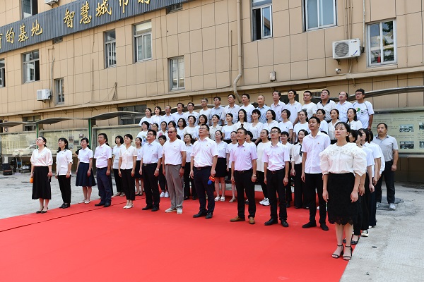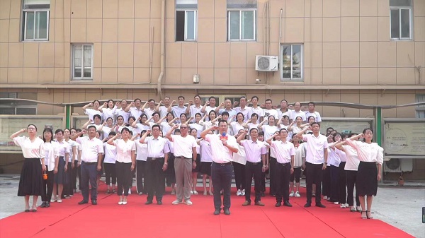 室外活动主要包括升旗仪式、集体宣誓和“全家福”留影。学院七十余位教职工排成四行,在嘹亮的国歌声中,庄严肃立,目光随着徐徐上升的国旗缓缓移动。