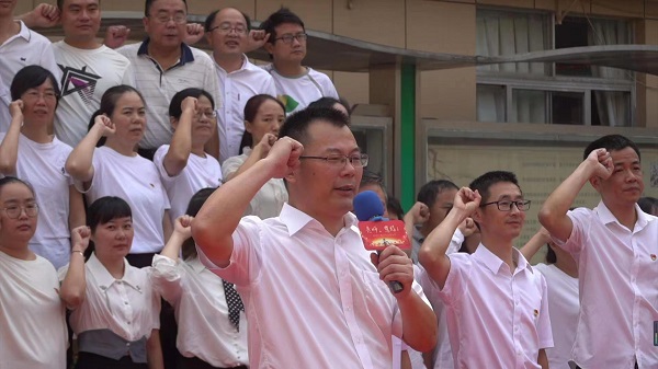 在随后的宣誓仪式中,由学院党总支书记、校长沃其洪作为领誓人,带领大家集体宣誓“余姚市人民教师誓词”:
