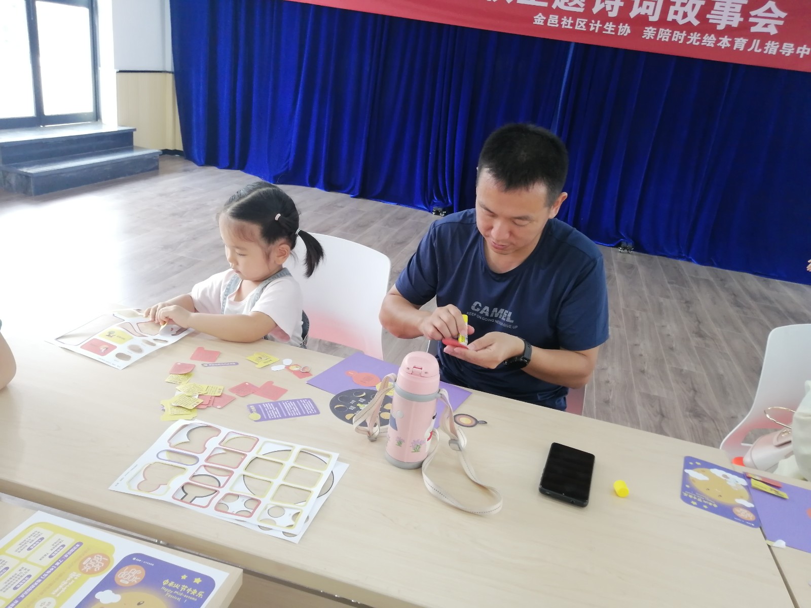 910日上午9点,金邑社区计生协在向日葵亲子小屋开展了中秋诗词故事会亲子活动。首先,老师与小朋友们进行手指童谣《月亮谣》互动热身,接下来亲子阅读绘本《月亮的味道》,充分发挥了小朋友们的想象力。之后是儿歌朗诵“弯弯的月亮小小的船”。手工活动将此次活动推向了高潮,家长和孩子一边做手工,一边了解了中秋相关习俗和与中秋,月亮有关的诗句,以及嫦娥奔月的故事,既锻炼了动手能力,又增进了对中国传统文化的了解。最后,在《明月几时有》的歌声中,大家合影留念,依依不舍地告别。