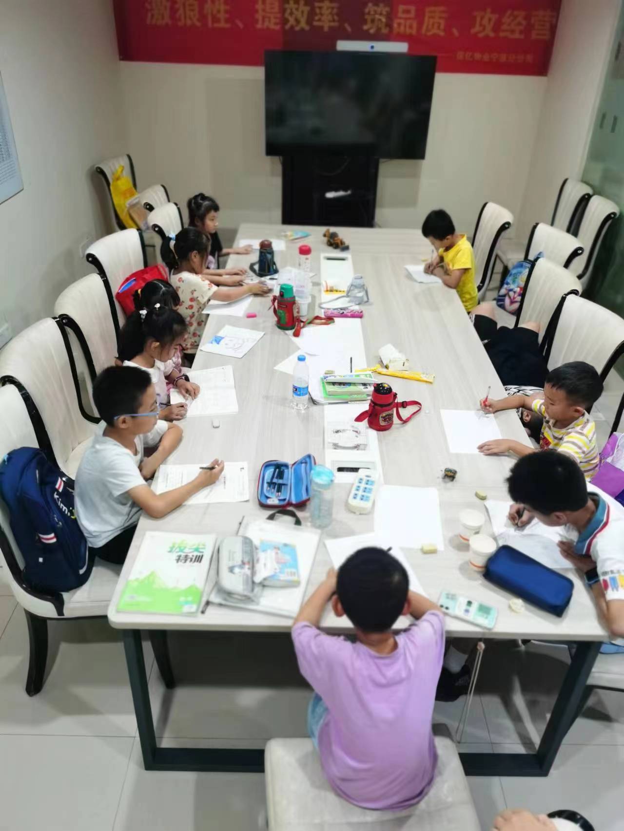 随后业主们纷纷联系管家进行了报名,今天一大早,一群萌娃们便来到了物业服务中心。在物业管家的陪伴下,孩子们在物业开展了各类益智游戏,完成了学校布置的作业,并享受了物业精心准备的水果和午饭,度过了有趣而美好的一天,同时也让台风天还奋斗在工作岗位上的爸爸妈妈们没有了后顾之忧。