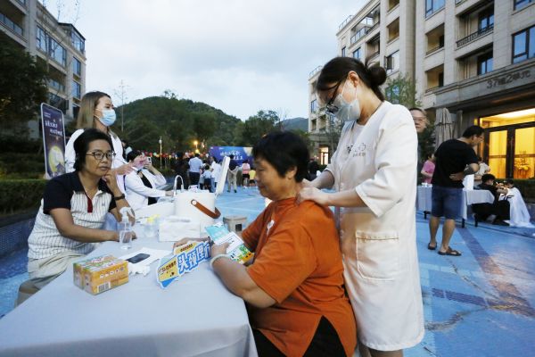 花好月圆日,阖家团圆时。又是一年中秋,为营造邻里共聚氛围,搭建居民共享平台,传承中秋传统文化,9月9日晚,大碶社区教育学院清泰社区分院在舜山府小区成功举办了主题为“皓月满金秋 邻里共良辰”的“碶上红领集市”,现场开设了桃山皮月饼制作、猜灯谜、有害垃圾兑换、头颈理疗、理发、口腔检查、紫草膏DIY、反诈反邪禁毒宣传、中医、心血管内科问诊等各种摊位,开启了温情之夜。