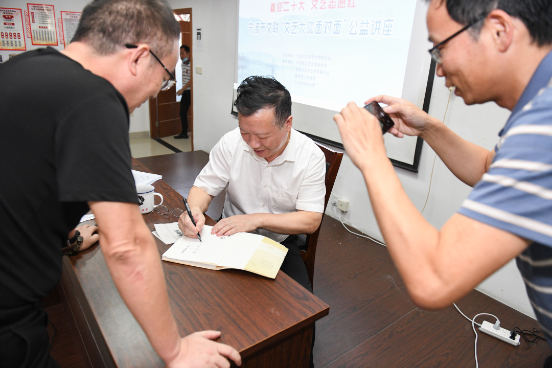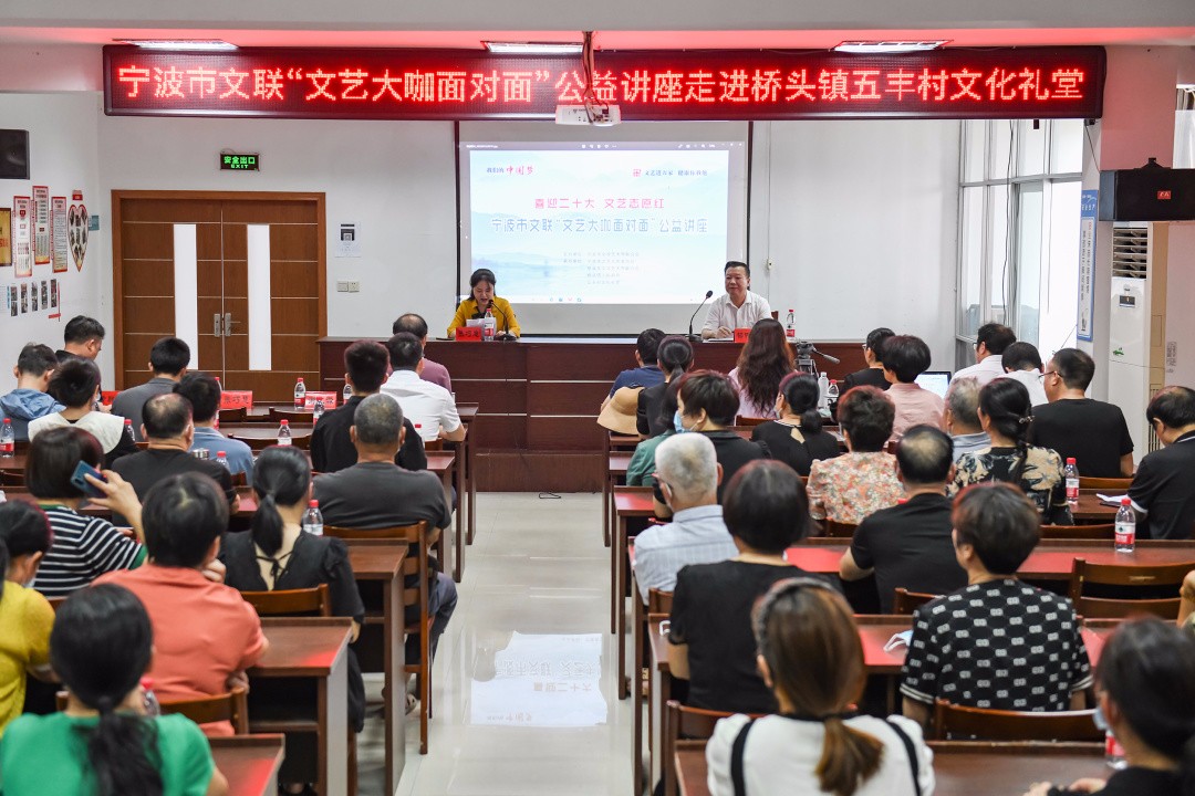 为喜迎党的二十大胜利召开,9月16日下午,喜迎二十大•文艺志愿红——宁波市文联首场“文艺大咖面对面”公益讲座在慈溪市桥头镇五丰村文化礼堂举行。