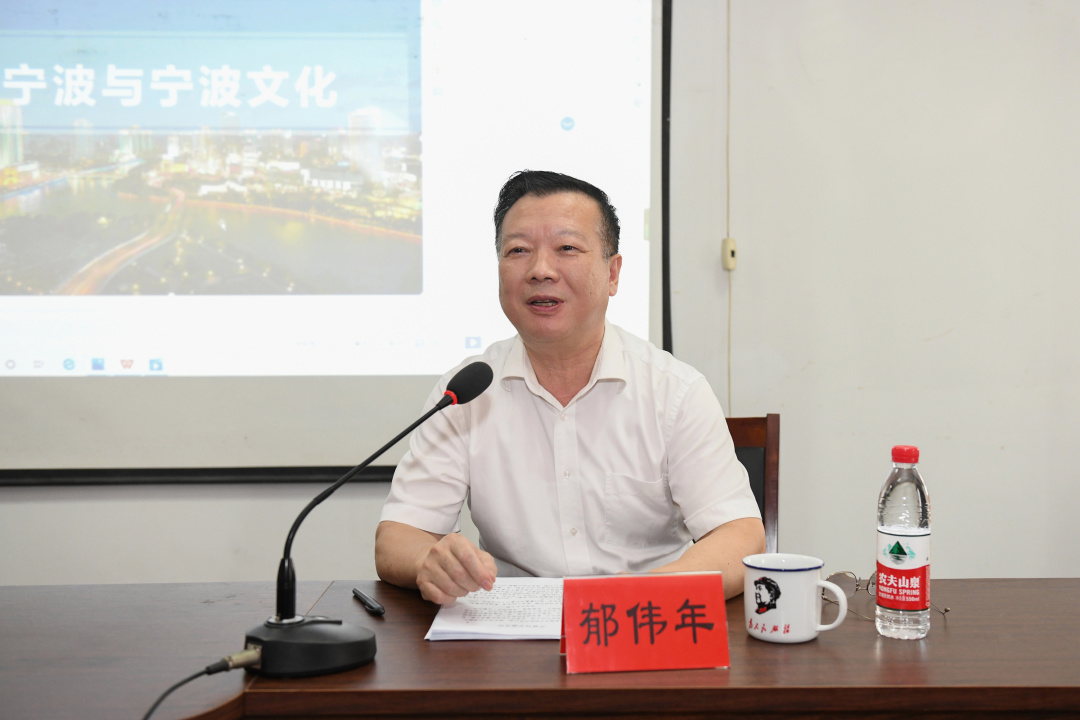 浙江省文联荣誉委员、宁波市文史研究馆馆员,中国民间文艺家协会会员、浙江省作家协会会员郁伟年以讲座形式,用深入浅出的讲析,提升学员群众对宁波文化的了解,为群众打开宁波千年历史的大门。