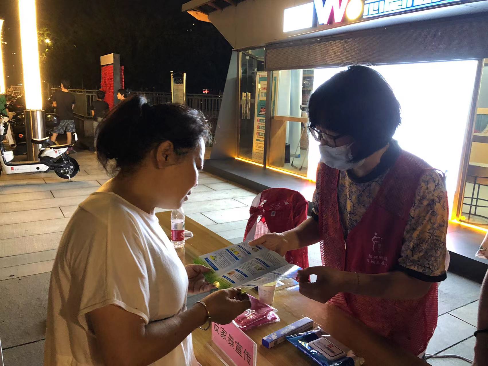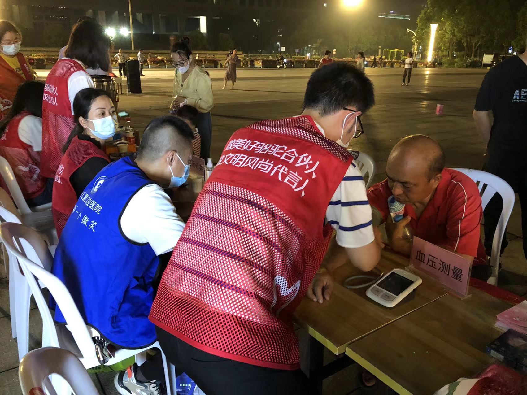晚上的市民广场跳广场舞、唱歌、散步的居民众多,大家看到后纷纷前来咨询。一位宝妈推着婴儿车来咨询母乳喂养以及二胎三胎政策,现场的工作人员耐心地进行解答;也有居民表示家里出现蟑螂,现场工作人员对其进行四害防治宣传并发放药物;几位老年人有序地排队进行血压测量,当听到血压正常时,脸上露出欣慰的笑容,当听到血压偏高时,工作人员也及时告知不必过于担心,控制饮食忌过油过肥,适当锻炼......