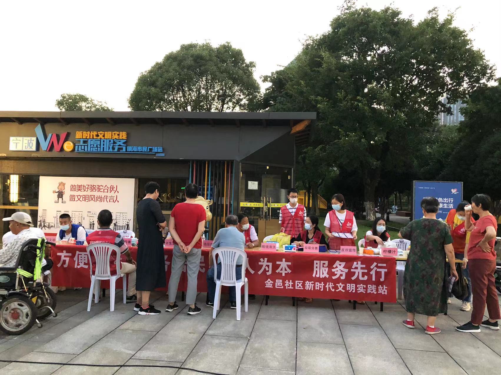916金邑社区在市民广场开展便民服务,为居民提供口腔义诊、血压测量、眼镜清洗、四害宣传、垃圾分类宣传、反诈宣传、计生宣传、柠檬水分享等服务。