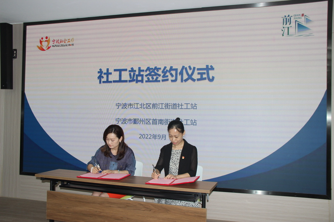 前江街道社工站和首南街道社工站结对签约仪式现场,参加结对共建的两位社工站负责人当场签订了结对共建协议。前江街道社工站负责人表示,两区的社工站建设虽有不同的区位优势,但有着共同的夯实基层治理基础的目标,两个街道的社工站“认亲”结对,将进一步加强沟通协调,逐步建立具有自身特色的社工站。