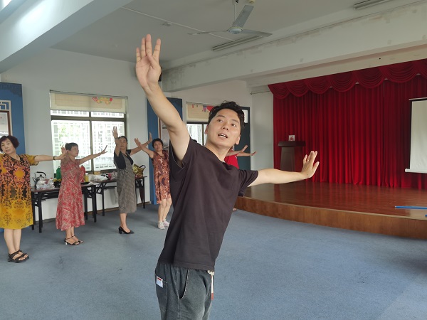 在霞浦街道第二届社区文艺调演之际,为了提高社区舞蹈队成员的舞蹈水平,陈华浦社区文化加油站邀请朱豪磊舞蹈老师对舞蹈队成员进行培训。