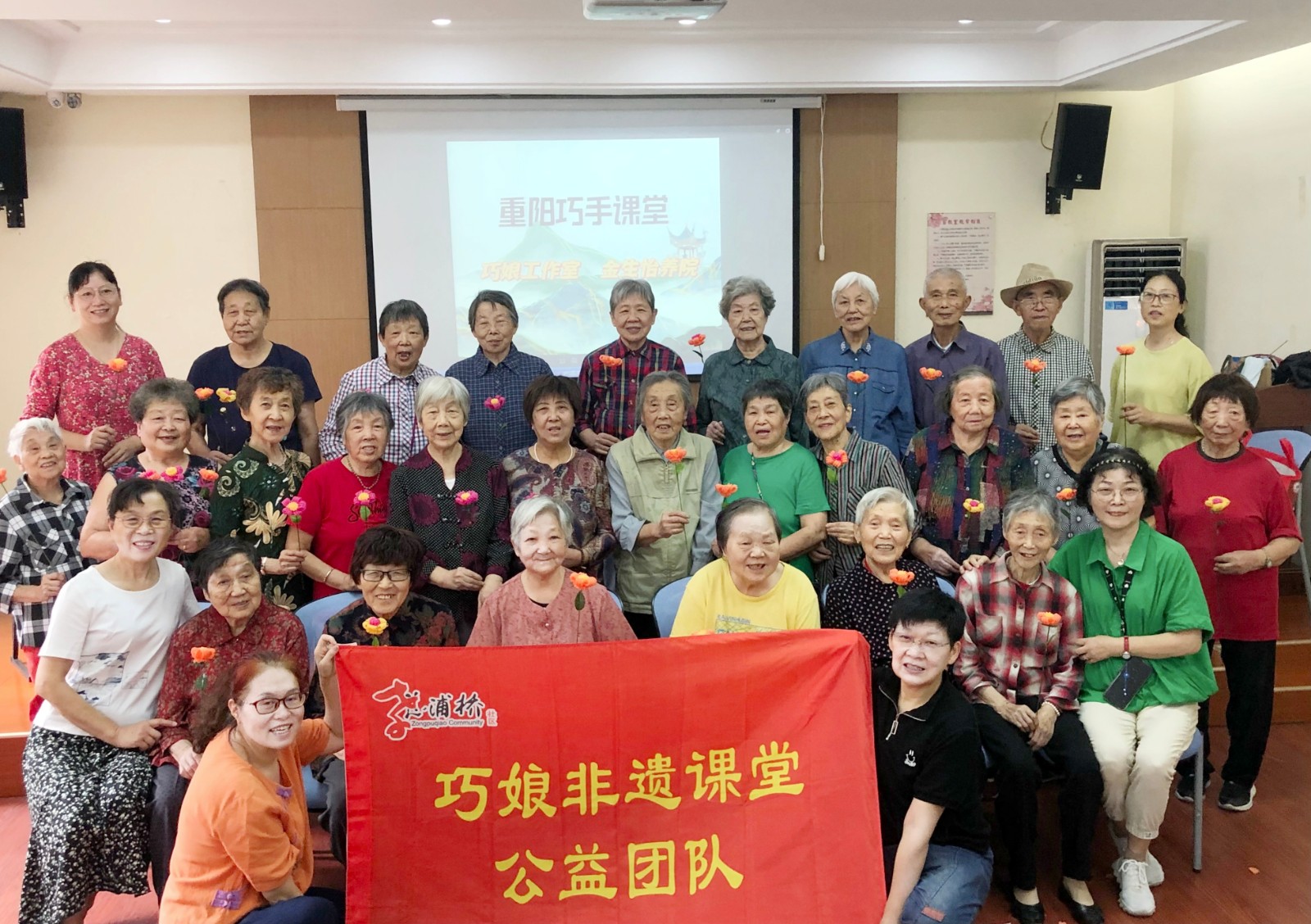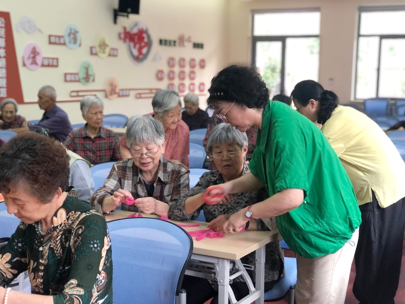 近日,在重阳节来临之际,为弘扬尊老、敬老、孝老和爱老的中华传统美德,招宝山社教中心邀请辖区巧娘工作室负责人金珊珍走进金生怡养院,开展了以“变废为宝庆重阳”为主题的老年手工DIY公益活动。本次活动吸引了怡养院38名住养老年人参加。