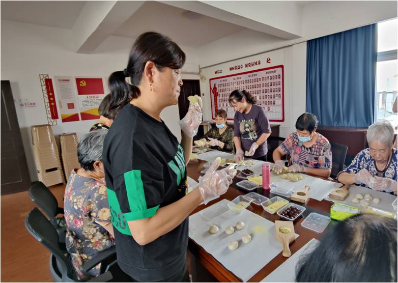 为弘扬中国传统文化,丰富社区居民的文化生活,国庆期间,洪塘盛园社区联合优护万家养老机构,携手宁波百年老字号赵大有,三方合作共同举办了“情浓金秋,共享团圆”活动金团制作。