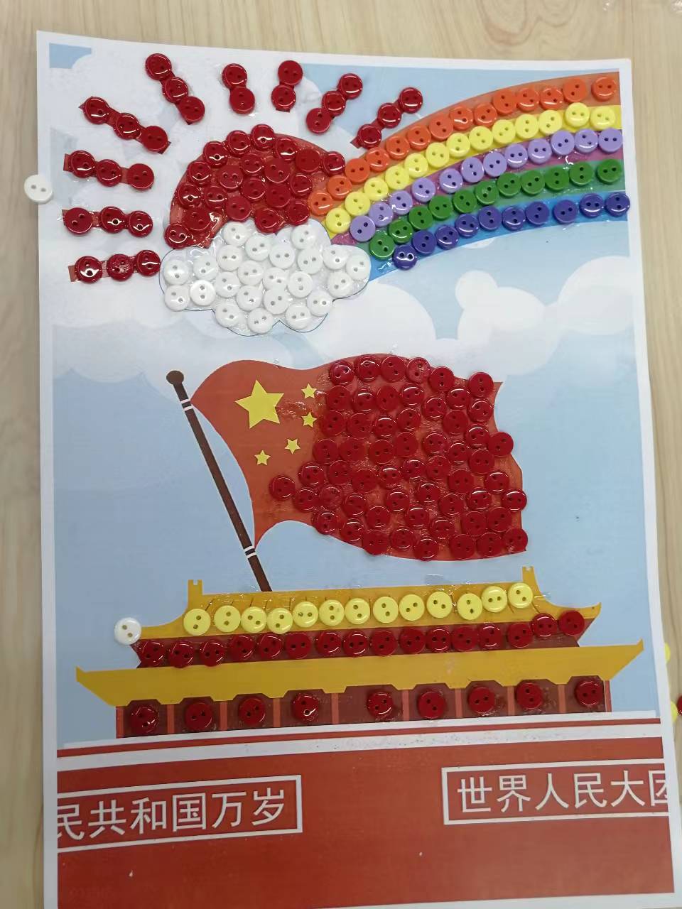 金邑社区镇红∙邻里中心举办“喜迎二十大,童心爱祖国”迎国庆主题活动。11组家庭参加,亲子合作完成天安门城楼纽扣画。稚嫩的小手兴致勃勃地拿起纽扣,在家长的帮助下粘上胶水,小心翼翼地放到图案上,按照不同的颜色搭配,动作越来越熟练。在大朋友、小朋友的共同努力下,一幅幅漂亮的纽扣画呈现在面前。