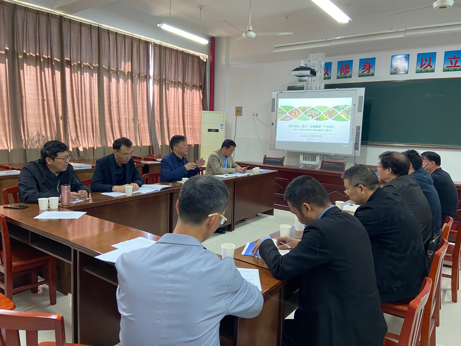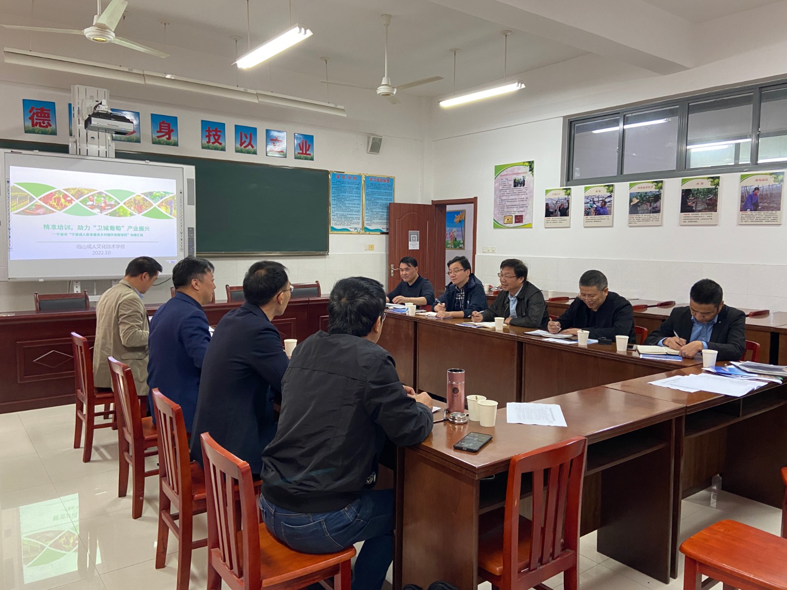 10月10日,秋日暖阳,宁波市教育局、余姚市教育局终身教育提升工程评估组莅临余姚市临山成校,对临山成校的“宁波市成人教育服务乡村振兴创新项目”进行评估验收。