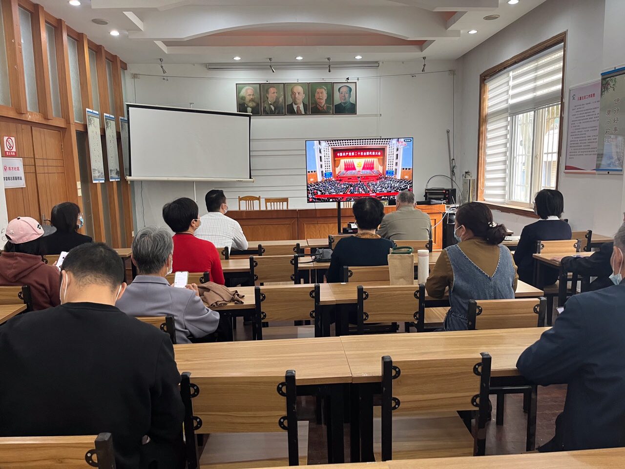 1016日上午,育才社区组织社区干部、党员、居民等10余人在社区居民学校收看了党的二十大开幕的盛况,聆听了习近平同志所做的工作报告。