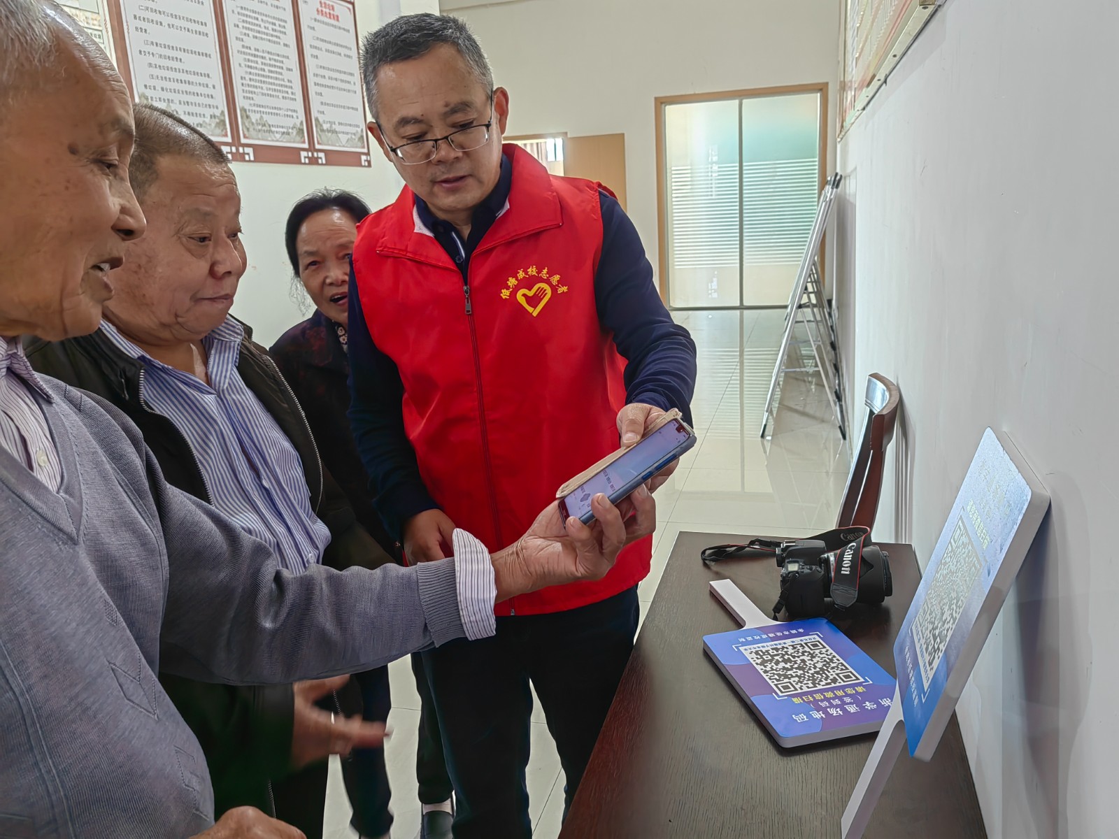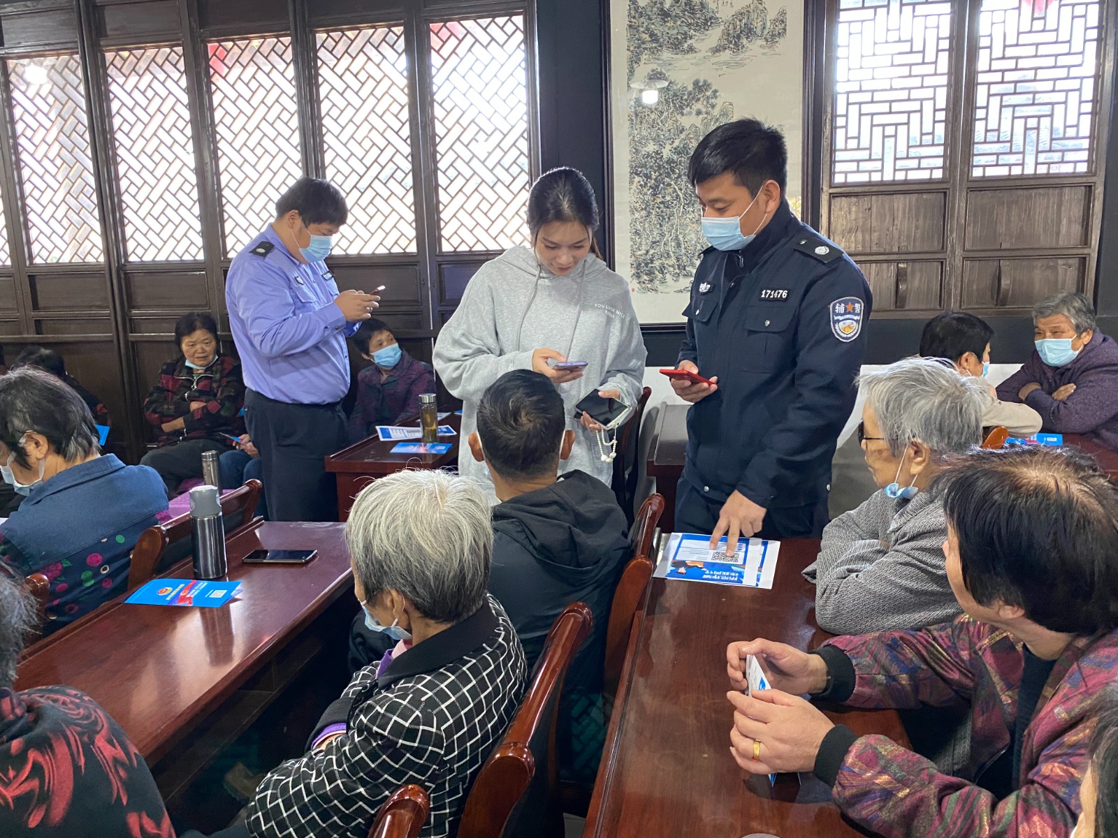 本学期,低塘成校与低塘派出所、余姚移动低塘支局联合推出智慧助老课程“智能手机反电信诈骗和智能手机应用”知识宣传进课堂活动。第一站在黄湖村老年学校举行,派出所民警和移动公司结合身边的案例,向老年人宣传防电信诈骗知识。低塘成校的志愿者每次上课前,向老年学员解答智能手机应用问题,帮助学员扫描浙学通场地码进行网上签到。