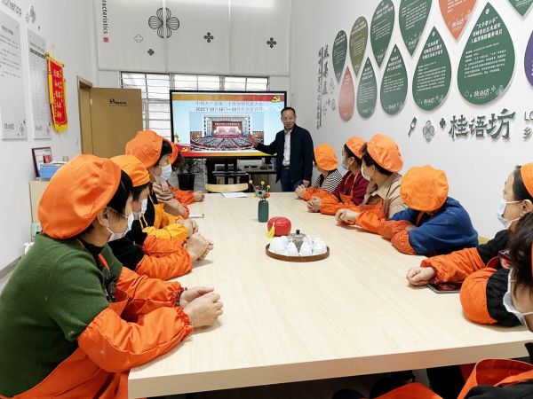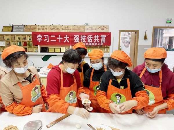 其实,在桂语坊里,每天都有许多阿嫂们在这里制作各类传统糕点,她们大部分人原先都是低收入人群或失业群体,如今在这里,通过学习致富技能,每人每月收入能达两三千。趁这次学习贯彻党的二十大精神热潮,我校联合塔峙岙社区也给阿嫂们带来精神上的“补给品”,让她们更深入了解共同富裕的深层含义。