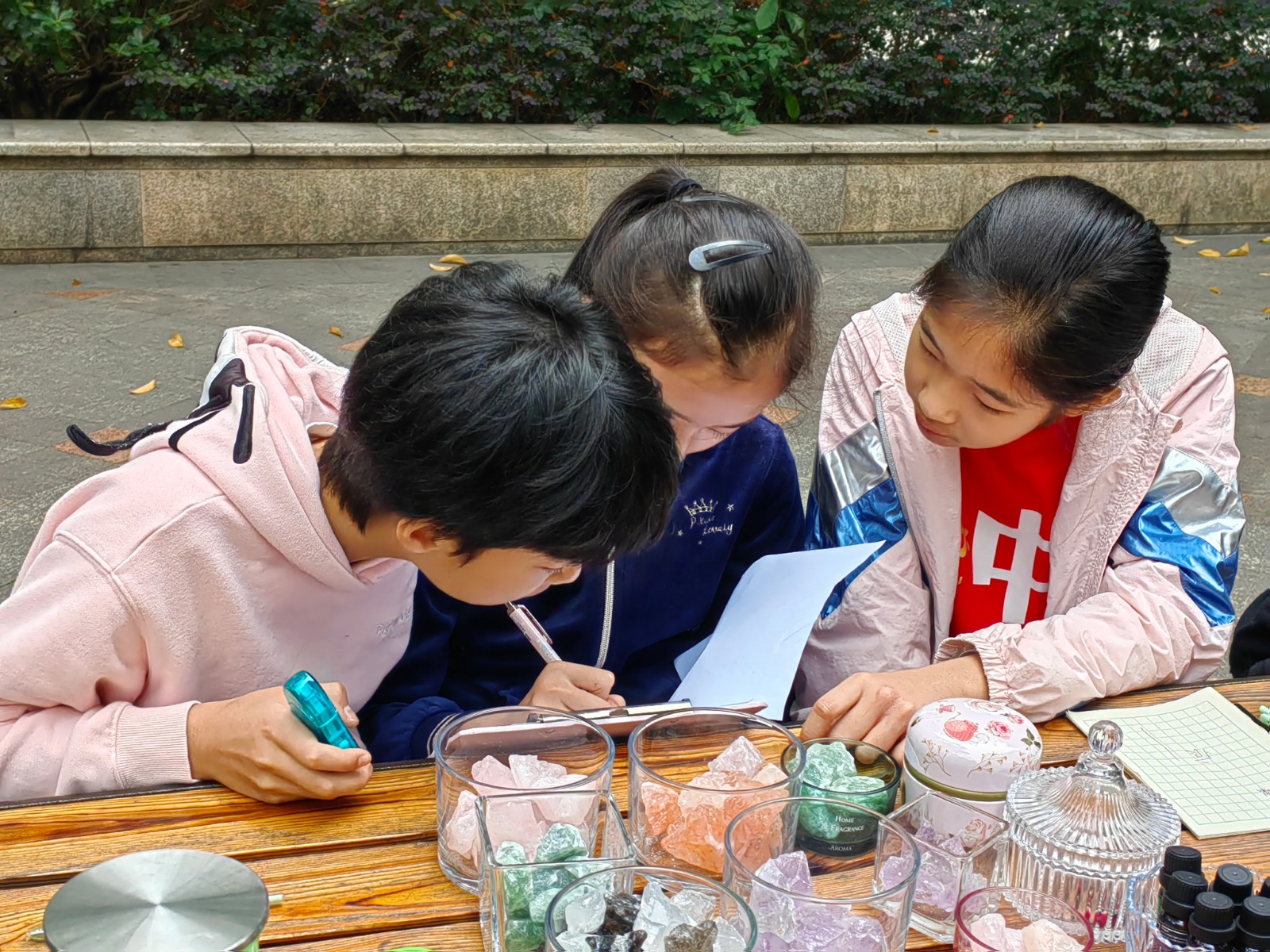 在活动中,老师介绍了关于科技创新的科普知识,亲手教孩子们认识、使用实验套装。孩子们通过亲手制作学习其中蕴含的知识和道理。活动中,一瓶瓶五彩的水晶吸引着孩子们的注意力,有的同学好奇地隔瓶欣赏,有的小心翼翼地拿起来四下打量着,通过老师的讲解,结合亲自观察和触摸,他们知道了原来天然的水晶原石每块颜色是不均匀的,内部有裂纹和絮状物。要是滴上几滴精油,香味就会扩散开来。原来,这就是水晶扩香现象。通过实践,大家明白了因为粗糙水晶表面有空隙,储存了香薰精油,精油缓慢挥发达到了扩香的目的。