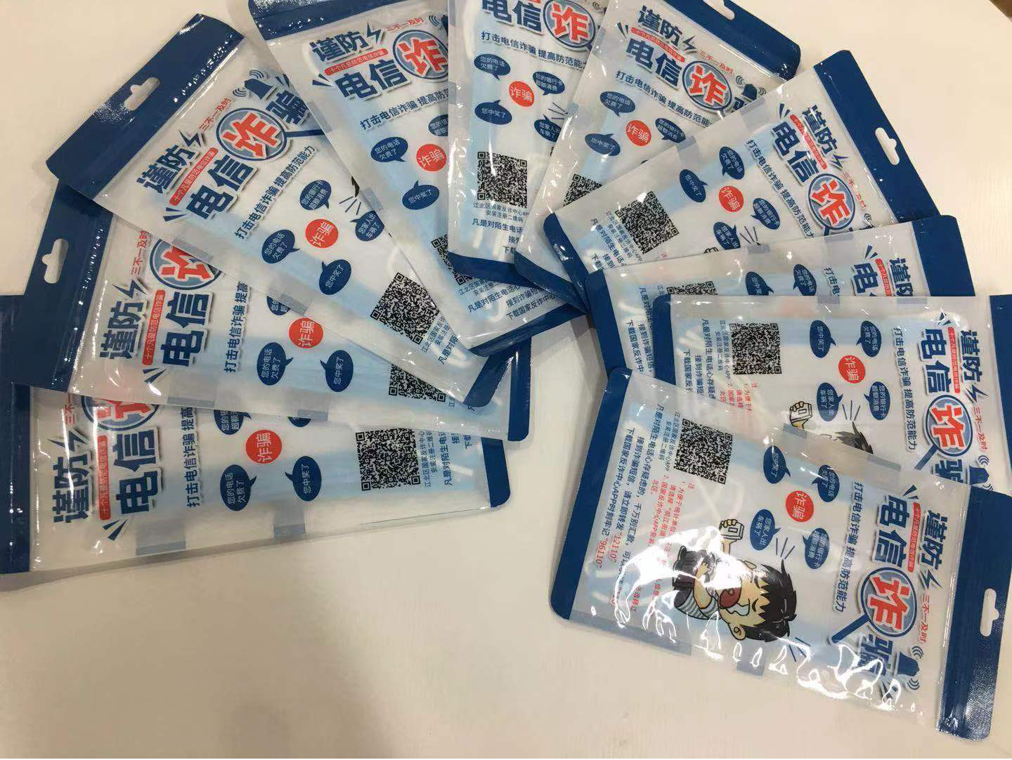 为了更好强化反诈宣传实效,提高“平安三率”知晓率,日前,前江街道不断创新宣传方式和手段,结合疫情防控工作,将反诈宣传提示语印在口罩包装上,推出“反诈口罩”,发放给前来做核酸的群众。