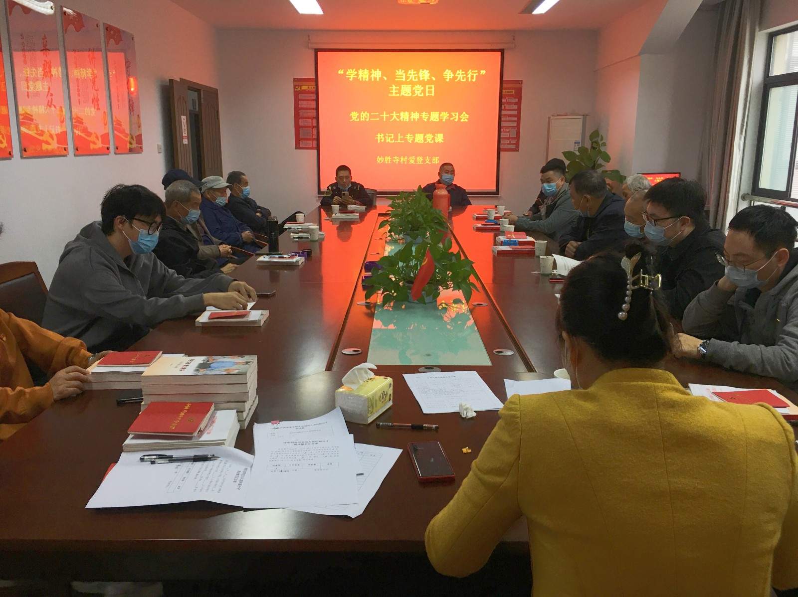 全员覆盖集中学。妙胜寺村各支部先后开展“学精神、当先锋、争先行”主题党日活动,在原汁原味个人自学的基础上,通过专题学习会的形式,组织党员集中学习党的二十大报告和新修订《党章》。浙江是习近平新时代中国特色社会主义思想重要萌发地。会上,支部书记要求党员把学习党的二十大精神与《习近平在浙江》《干在实处勇立潮头—习近平浙江足迹》等书目研读结合起来,不断体悟党的二十大提出的新思想新论断。部分党员因年老体弱行动不便、上班、外出、疫情等原因无法参会,各支部因地制宜、因时制宜、因人制宜开展学习教育,采取“线上+线下”方式传达贯彻党的二十大精神,鼓励党员利用好“学习强国”、微信群、电视、网络等多种载体自行学习领会党的二十大精神,确保党员学习全覆盖。