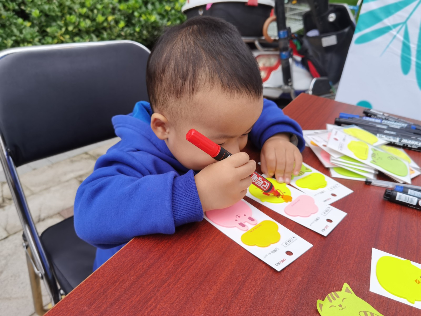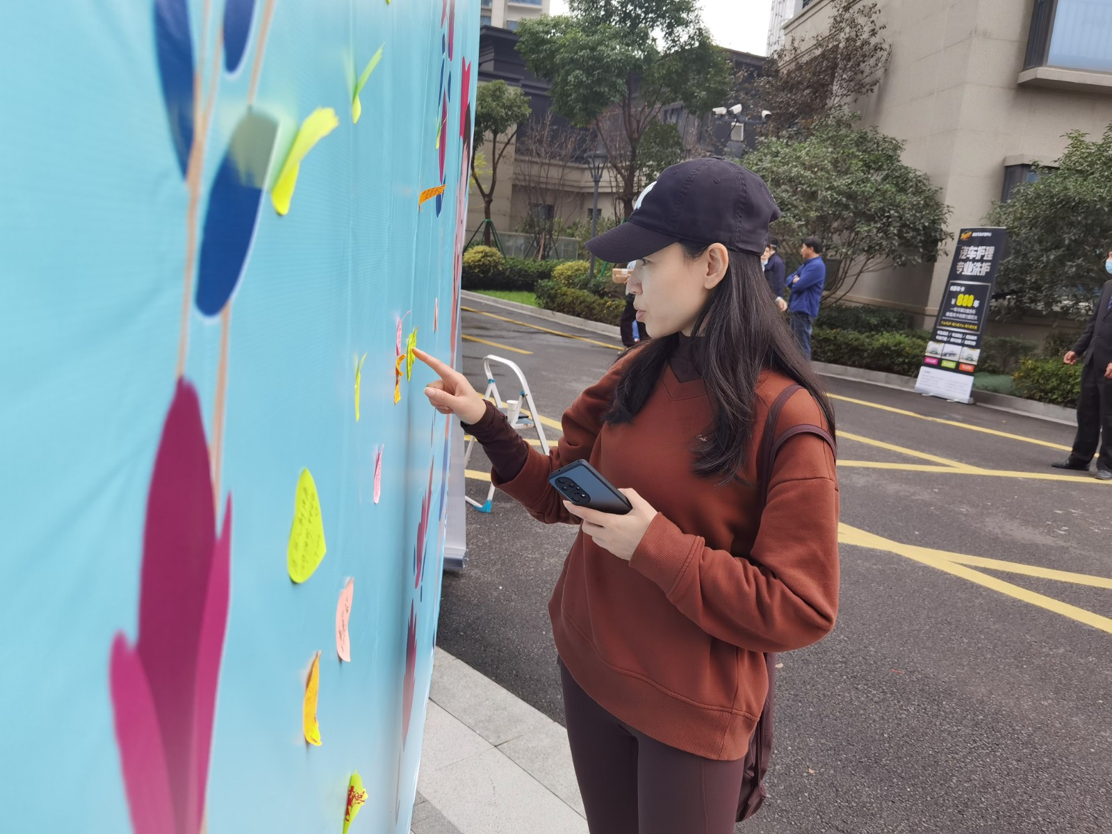 写下真挚问候,传递美好情感。大大的问候墙上:“你好”,“吃饭了么”,“早上好”等字样吸引着业主们,许多小朋友拿起笔写起了对家人、朋友的问候语:“爸爸妈妈我爱您!”“外公外婆辛苦啦!”“你好胡浩然同学“......还不会写字的小朋友用画画的形式表达了自己的问候,画出爸爸妈妈的样子,画一个个小爱心、小花朵。一张张便签贴在了问候墙上,一声声问候传递到他/她的心里。