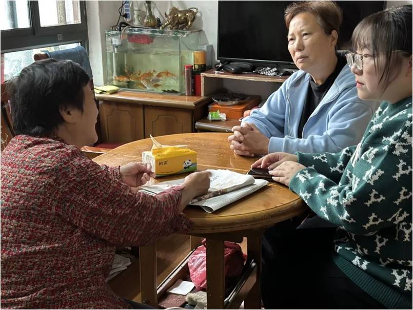 近日,亚萍爱心服务工作室的负责人张亚萍在社区工作人员的陪同下,再次走进殷奶奶家,以唠家常的方式帮助她纾解情绪,了解家庭困难,给予适当的开导和指引。“阿姨,我们江北区现在对残疾人的手机话费也有补贴的。”殷奶奶表示自己并不知道有这样的补贴政策,张亚萍立刻跟殷奶奶约好,周末一起去营业厅办理补贴。