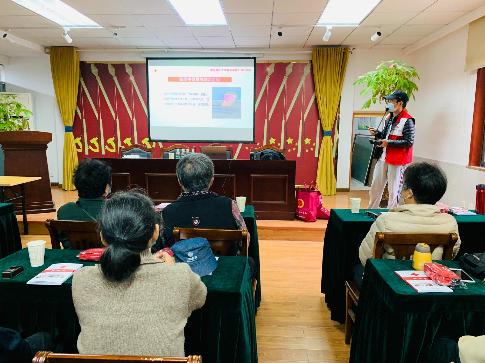 为发扬“人道、博爱、奉献”的红十字精神,提高居民自救与互救意识、掌握初级急救知识、提高应对意外的能力,金邑社区组织开展救护员培训。培训分为理论实操两部分,镇海区红十字的志愿者讲师向学员们讲解了红十字的起源和发展、心肺复苏的要点、外出血的处理,并进行了实操练习。学员们认真学习并通过了讨论。