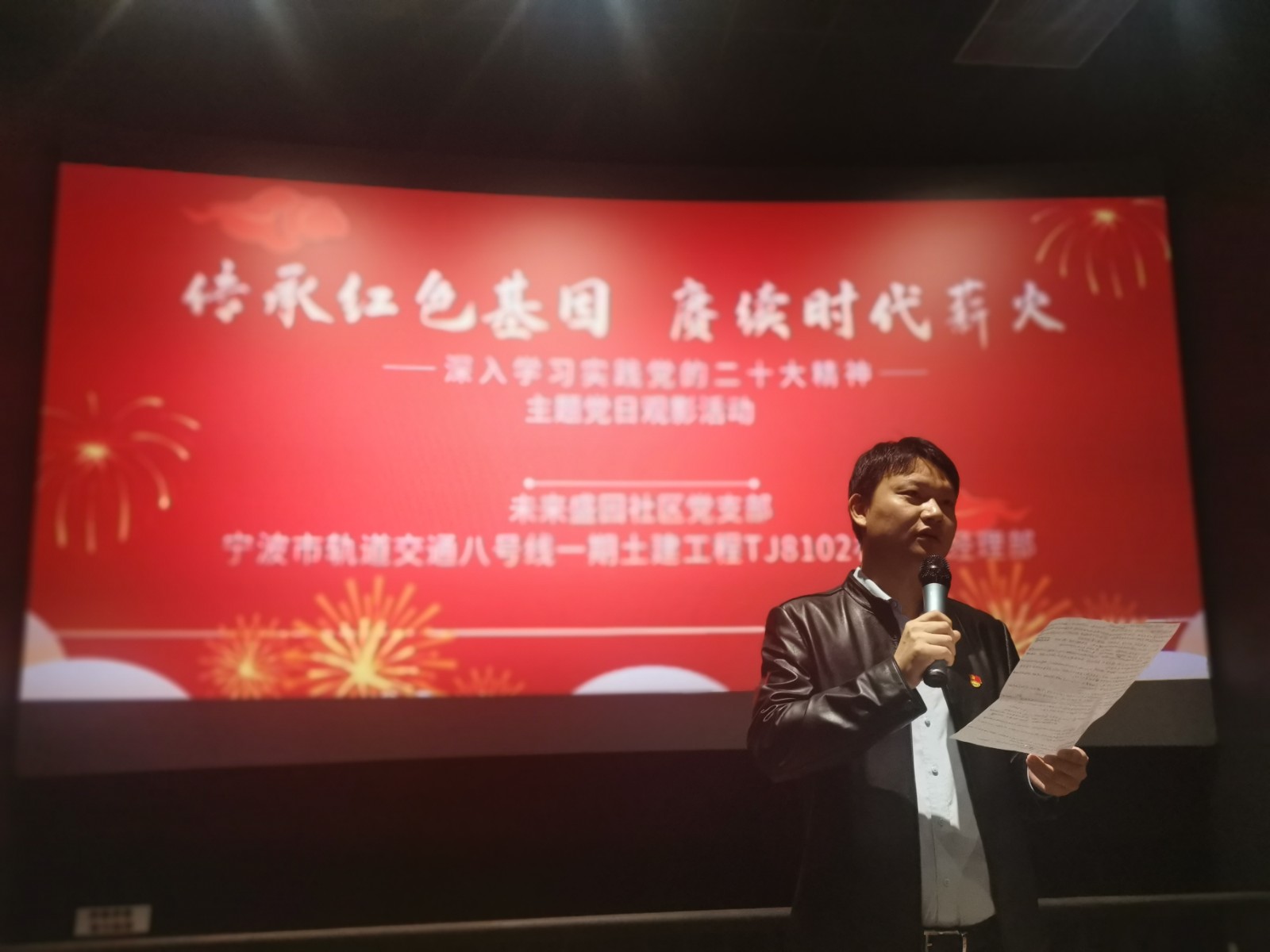 为进一步营造学习宣传贯彻党的二十大精神的浓厚氛围,11月20日晚,未来盛园社区党支部联合宁波市轨道交通八号线一期土建工程TJ8102标项目经理部共同开展主题观影活动,组织党员干部观看红色电影《万里归途》。