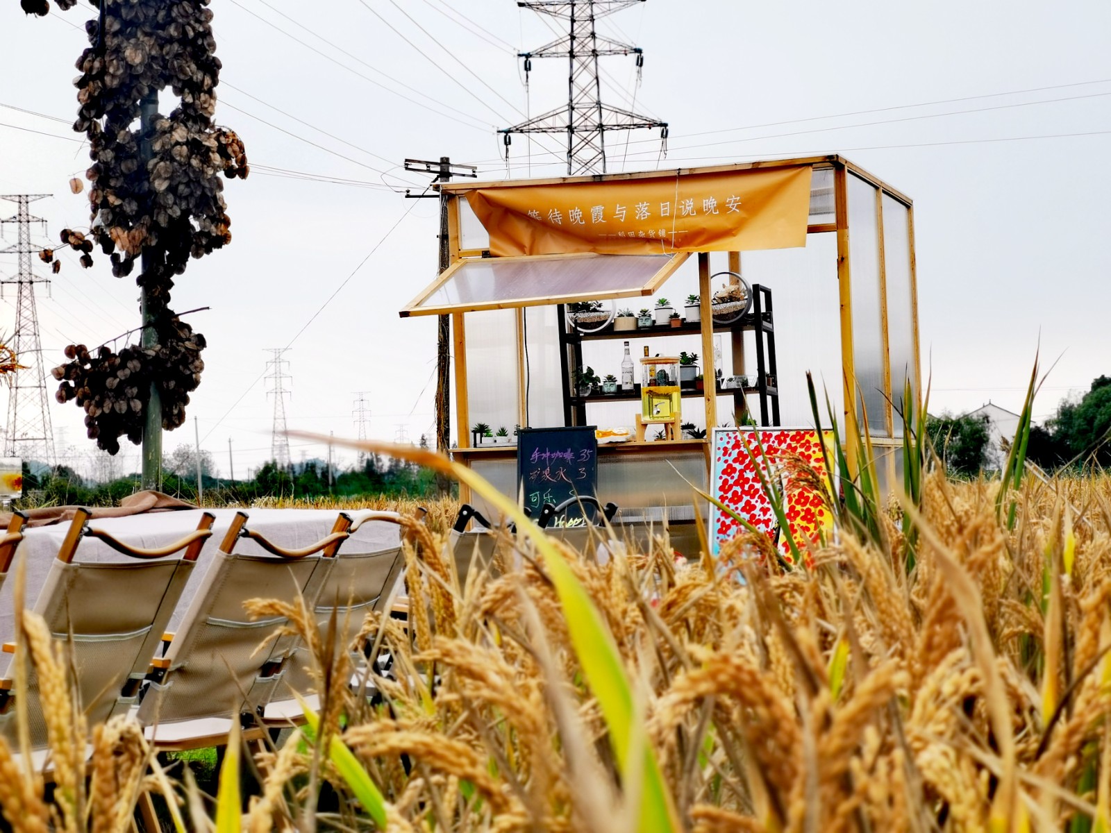 深秋的午后,江北区老樟树民宿前的稻田被染成了金黄,是沉甸甸的黄,丰收的黄,更是诗意的黄。秋风起,金黄的颂辞,在一粒粒谷子的内部传送。