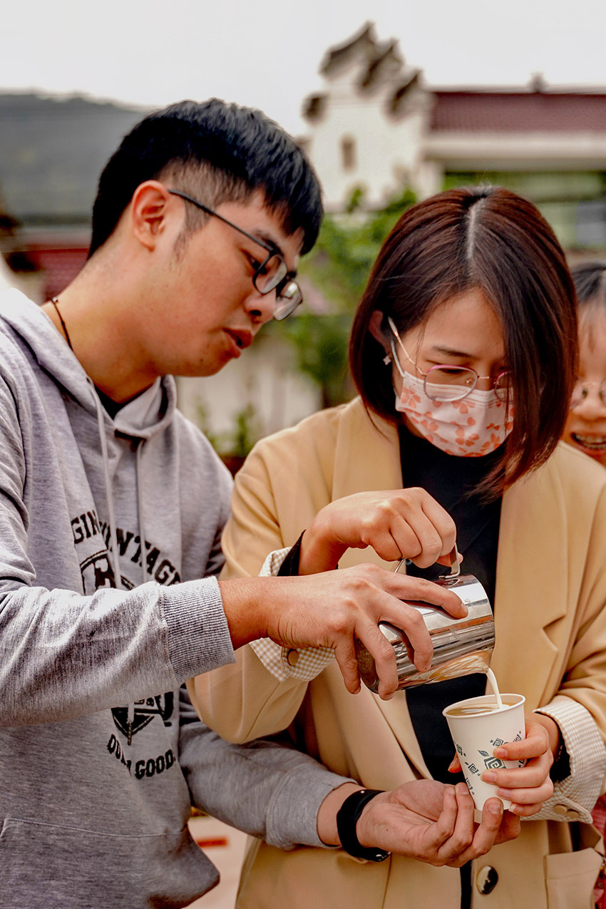 生活与咖啡在现今的时代里也愈加成为密不可分的“伴侣”。本次课程的学习者都是来自江北区的各个民宿的管家或从业者,通过这次体验课,大家会挑选优质的烘焙咖啡豆,能基本操作咖啡机,学习打出绵密的奶泡,尝试拿铁拉花,以便能更好的服务客人,提升民宿的服务档次。