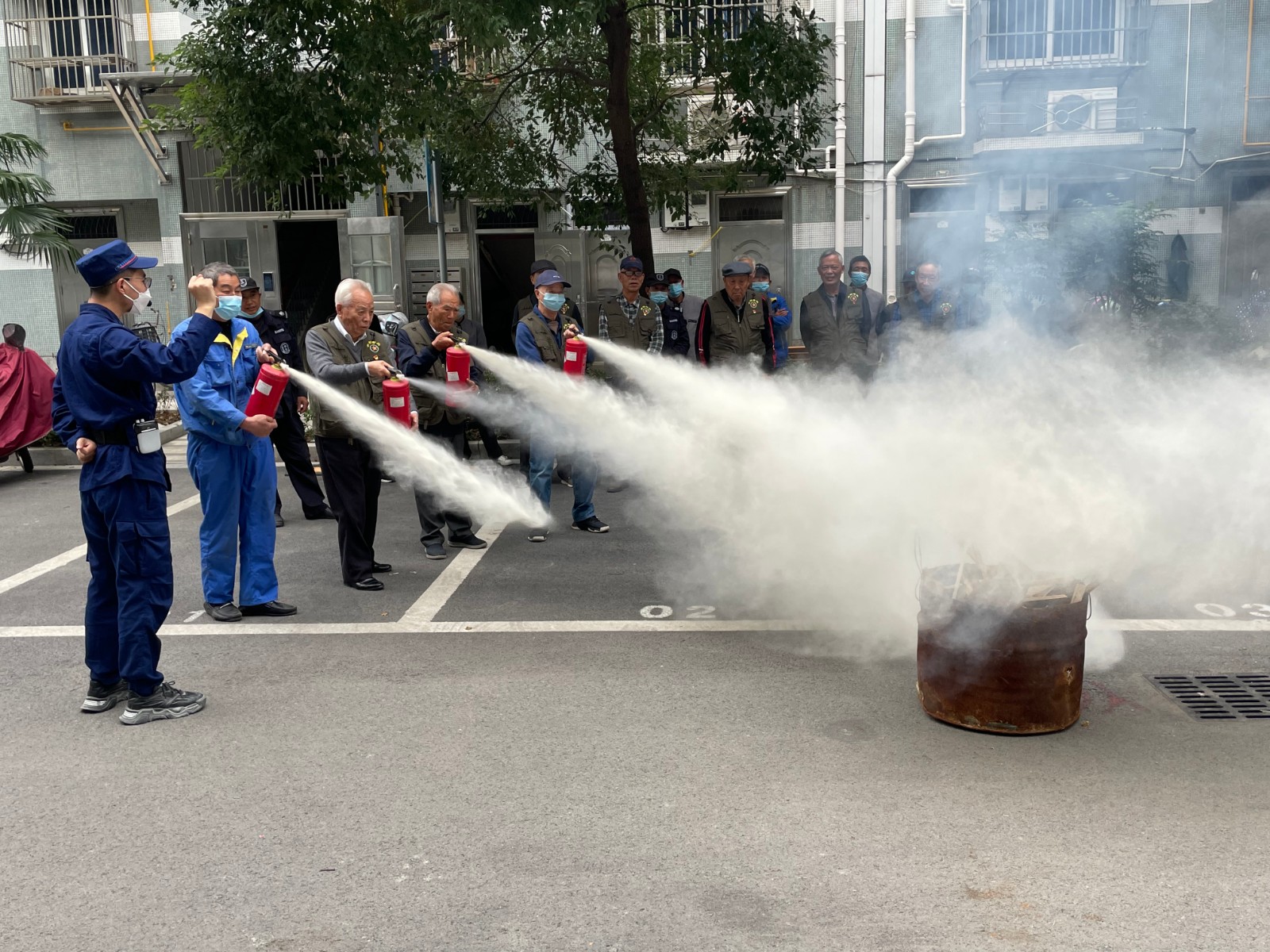为进一步加强辖区内消防安全工作,普及消防知识和灭火器使用办法,切实提高居民的消防安全意识及 防火防灾、突发事件应急处理能力,中街社区于11月25日邀请了专业消防教官组织开展了“关注消防 珍惜生命”消防安全宣教活动。消防教官向老兵骨干和小区工作人员讲解了灭火器的使用方法、发生火灾 事故后的基本扑救方法、自防自救措施等消防安全知识,并进行了示范操作。随后现场操作灭火器,练 习灭火技能。社区通过此次演练活动,提高居民灭火逃生能力,为消除火灾隐患、共建平安社区营造了 良好的消防氛围。