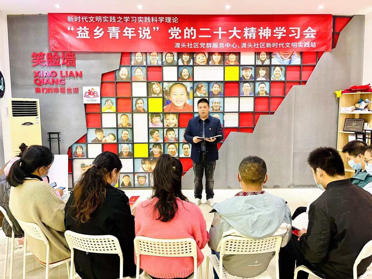 11月24日晚,“益乡青年说”党的二十大精神学习会在戚家山街道渡头社区党群服务中心举行。区党代表李清强带领社区青年党员、流动党员代表和志愿者骨干热议二十大报告。