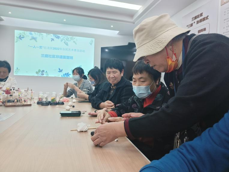 为进一步传承中华民族优秀传统文化,更好地满足居民群众精神文化需求,1128日,兰庭社区老年大学组织志愿者走进社区开展“非遗进社区”活动,70多岁的志愿者为社区学员们讲解非遗文化的由来,并手把手带领们手工完成面塑作品。在兰庭社区党群服务中心,洋溢着一片热闹祥和的气氛。“我们做最近流行的世界杯吉祥物吧,要先完成足球和吉祥物的两个部分……”面塑班的志愿者一边用手做着示范,一边耐心讲解每一个步骤,不一会儿,一个个吉祥物展现在大家面前。在场的每一位学员都在耐心听讲,认真学习着泥塑的制作。