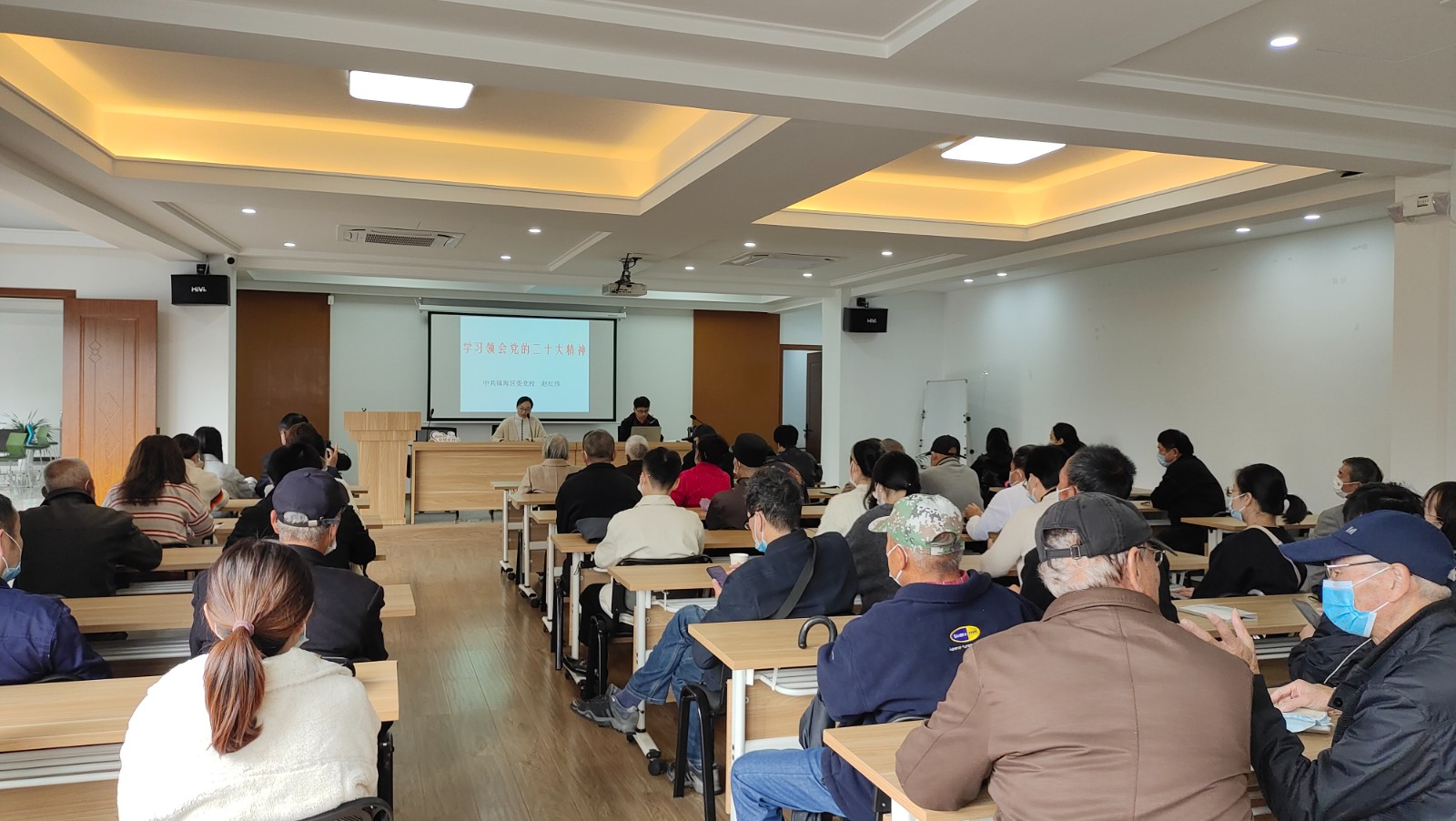 11月17日,汉郡社区为深入贯彻学习党的二十大精神,邀请镇海区党校赵红伟老师为辖区内居民开展专题教育讲座,赵红伟老师围绕党的二十大报告内容,进行了深入的剖析和宣讲。课上强调,要深刻学习领会党的二十大报告精神,紧密联系实际,牢牢抓住中心任务,把学习贯彻党的二十大成果体现在工作落实和发展成效上。