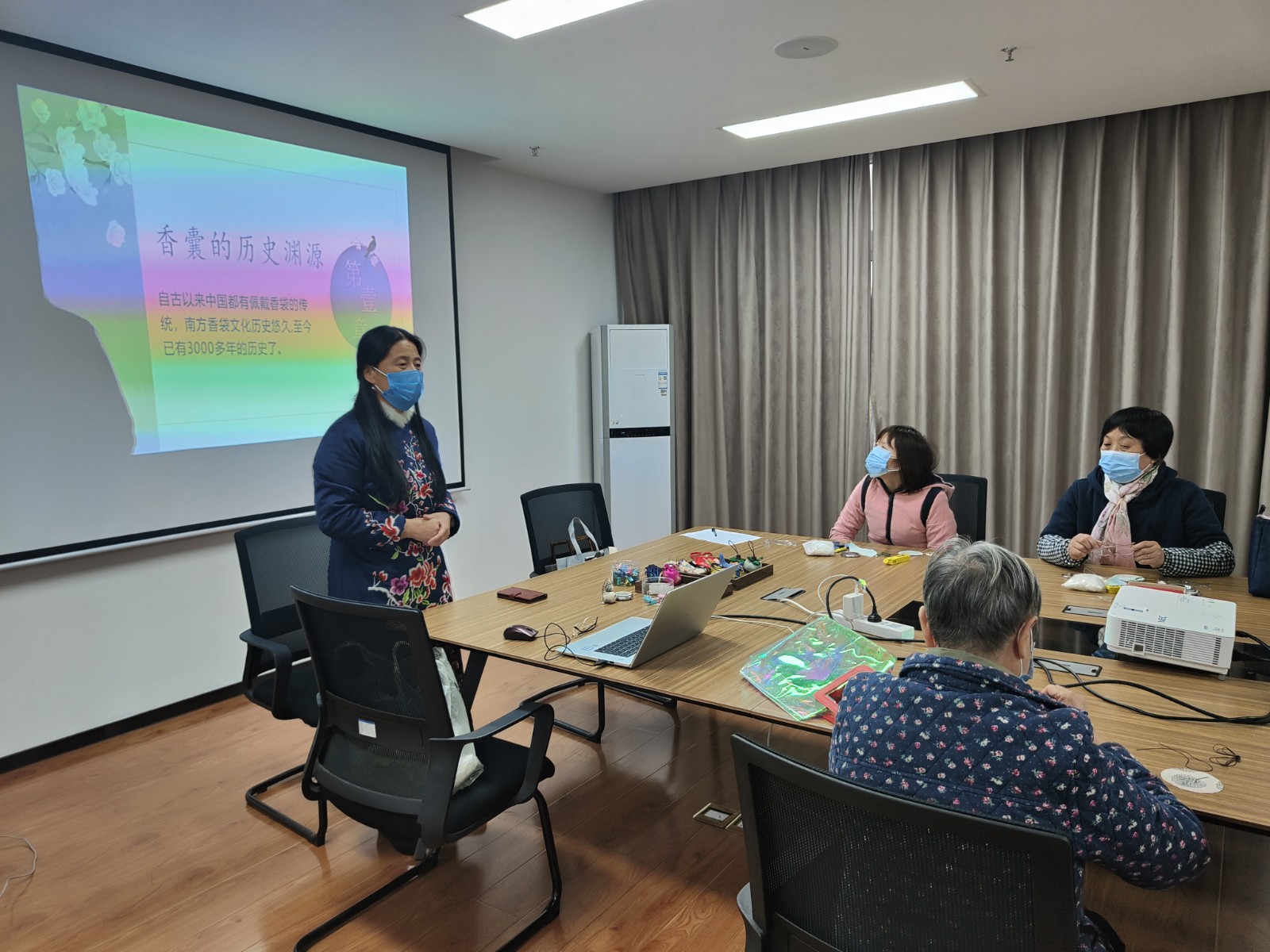 为丰富辖区居民的文化生活,近日,江北前江街道未来盛园社区“一人一艺”非遗香袋班迎来了第一课。