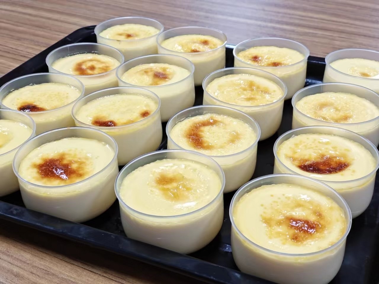 社区网格长黄霞化身“烘焙师”,为二级网格员、志愿者们带来趣味烘焙——法式布丁,在她的清晰讲解下,大家很快掌握了要领。蛋黄、稀奶油、鲜牛奶混合搅拌,筛入布丁杯。很快一个个小布丁杯进入烤箱等待成熟。
