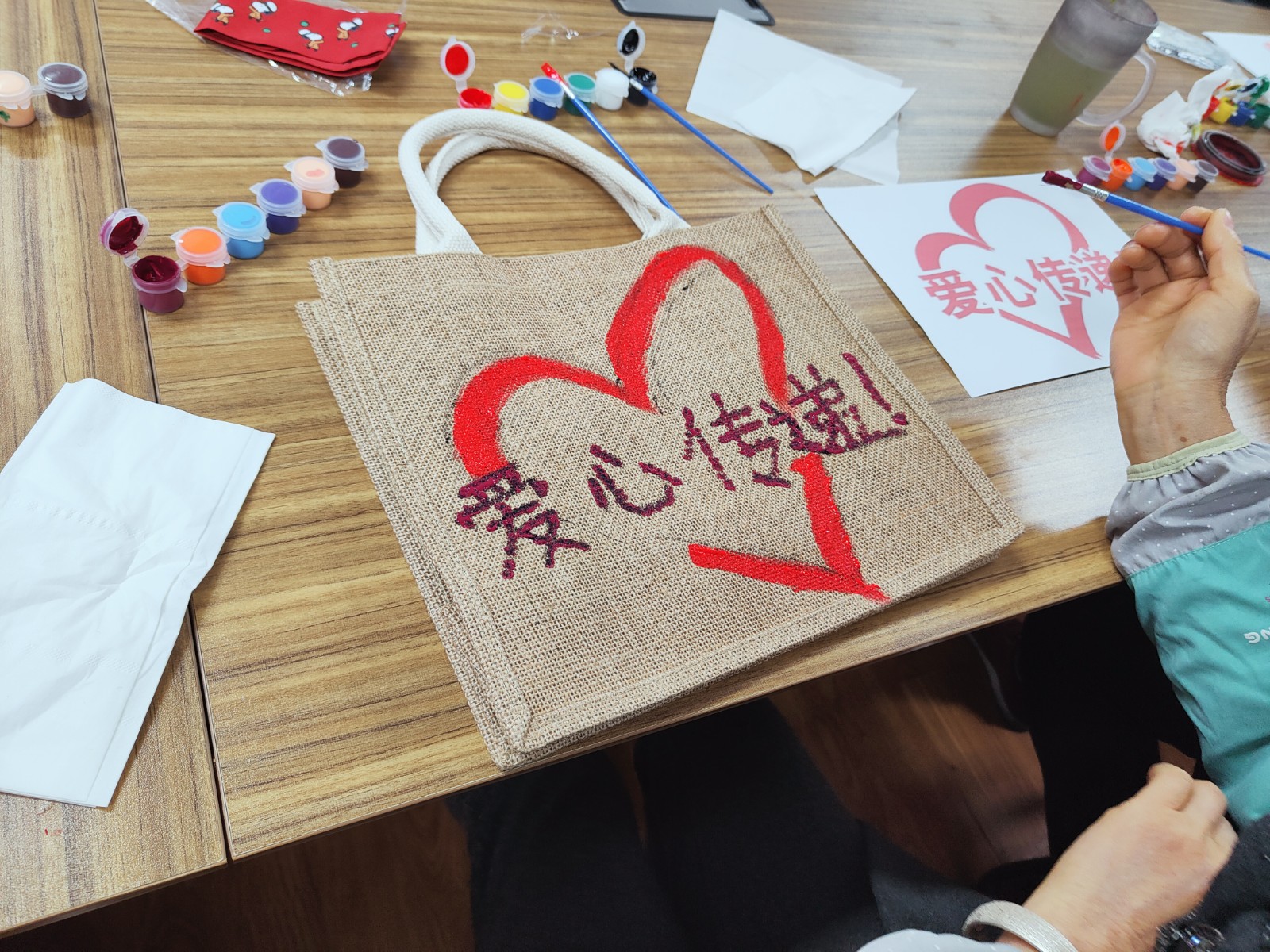 志愿者们手上拿着画笔绘制,相互间还互相分享志愿活动感受和印象深刻的瞬间。半小时后,一个个充满爱心和创意的“志愿绘”主题帆布包就完成了。