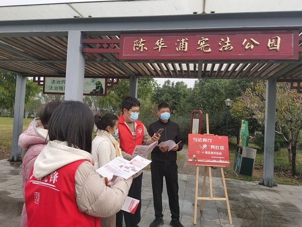 活动中,志愿者在陈华浦宪法公园、社区大厅、核酸点位等开设摊位,通过分发学习资料、一对一讲解、面对面解答群众法律咨询等方式,普及宪法知识,加深了居民对宪法和法律的认识和理解,增强了居民的法治意识、用法观念和维权能力,进一步营造了浓厚的普法宣传氛围。