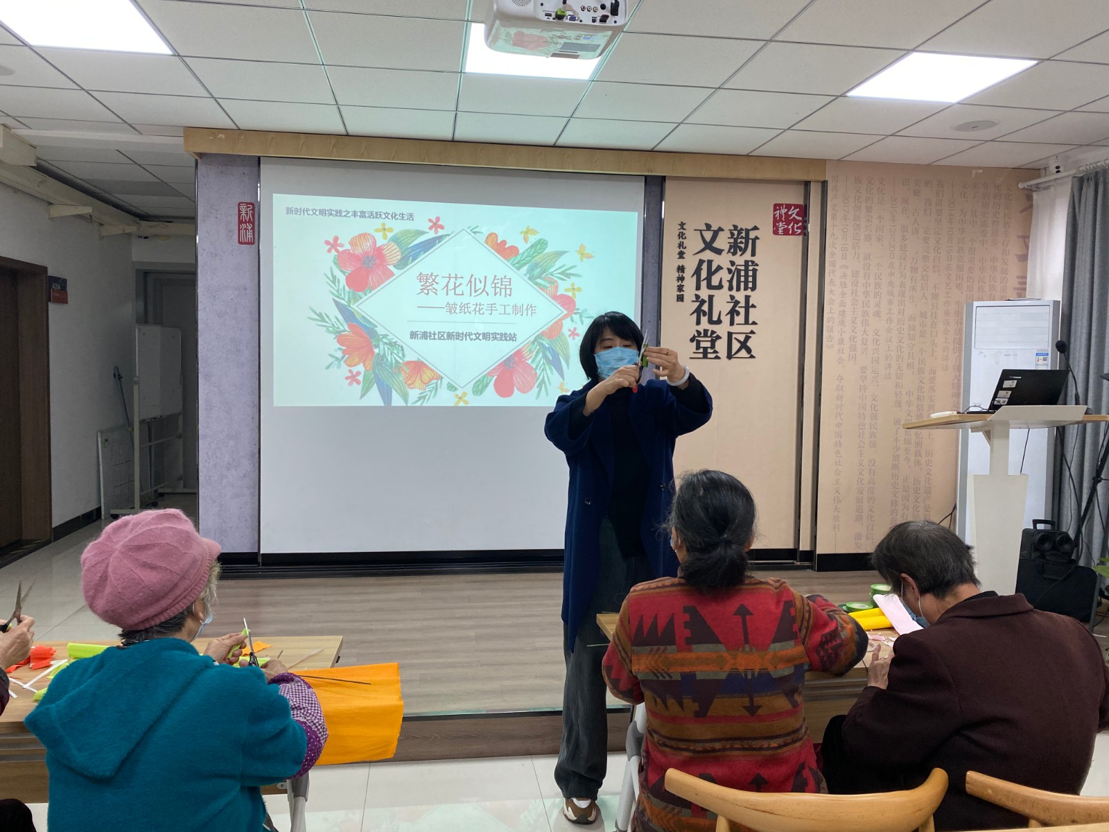 为丰富老年人的生活,培养老年人的兴趣和爱好,加强老年人的动手动脑的协调能力。12月9日上午,新浦社区邀请北仑区文化加油站老师在社区开展“繁花似锦”皱纸花手工制作课堂。