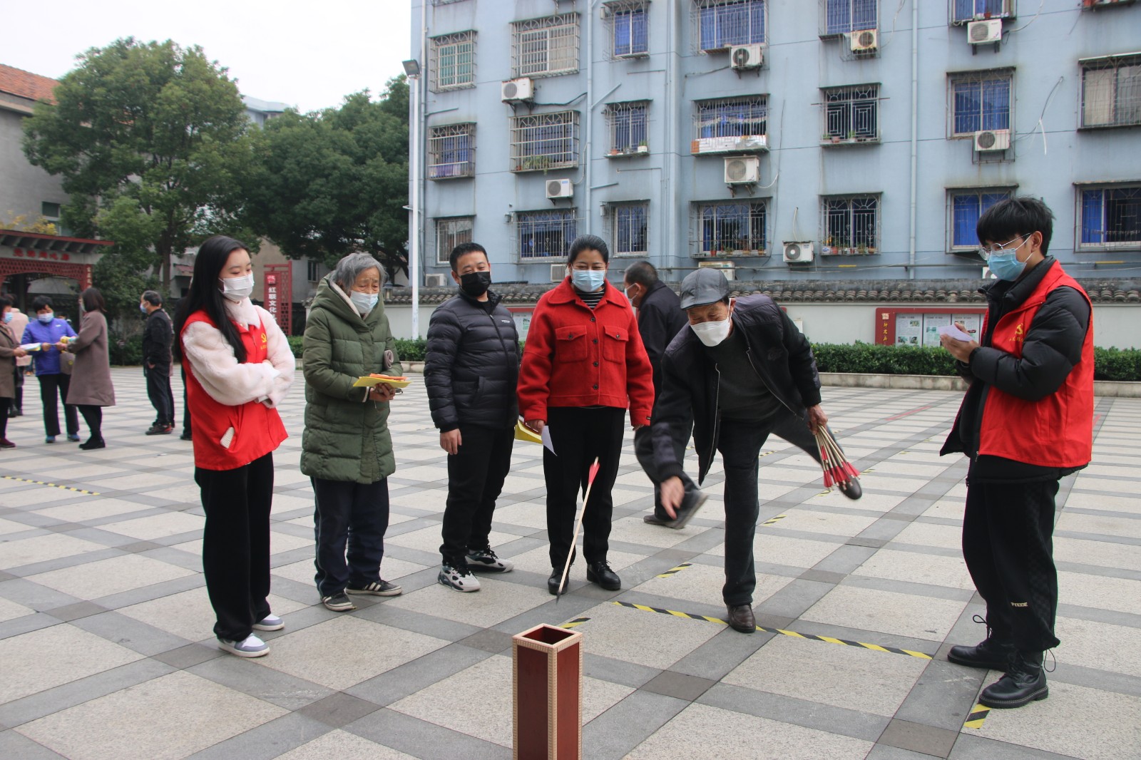 “这个游戏年轻的时候常玩,太久没玩都生疏了。”在互动游戏区域,投壶、套圈,居民群众正玩得热火朝天。不仅有年轻的居民,还有许多年纪大一点的叔叔阿姨,他们一个个神采奕奕,兴致勃勃,还吸引到了众多居民驻足观看。最为热闹的便是兑换礼品区域,社区居民需凭借闯关卡上完成的3次挑战,到志愿者处换取一份刮刮乐,并根据提示兑换奖品,现场呈现出一幅其乐融融的景象。