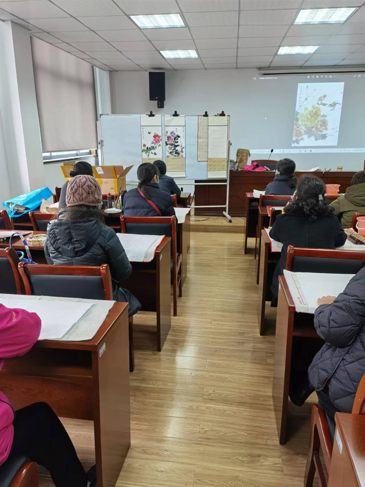本次课程的主题是牡丹小品的练习,老师预先精心画好2副牡丹画,然后和学员们一起品鉴,分析哪里画的好哪里有不足,学生们都兴致勃勃,最后在老师的详细指导下画一幅自己的牡丹。