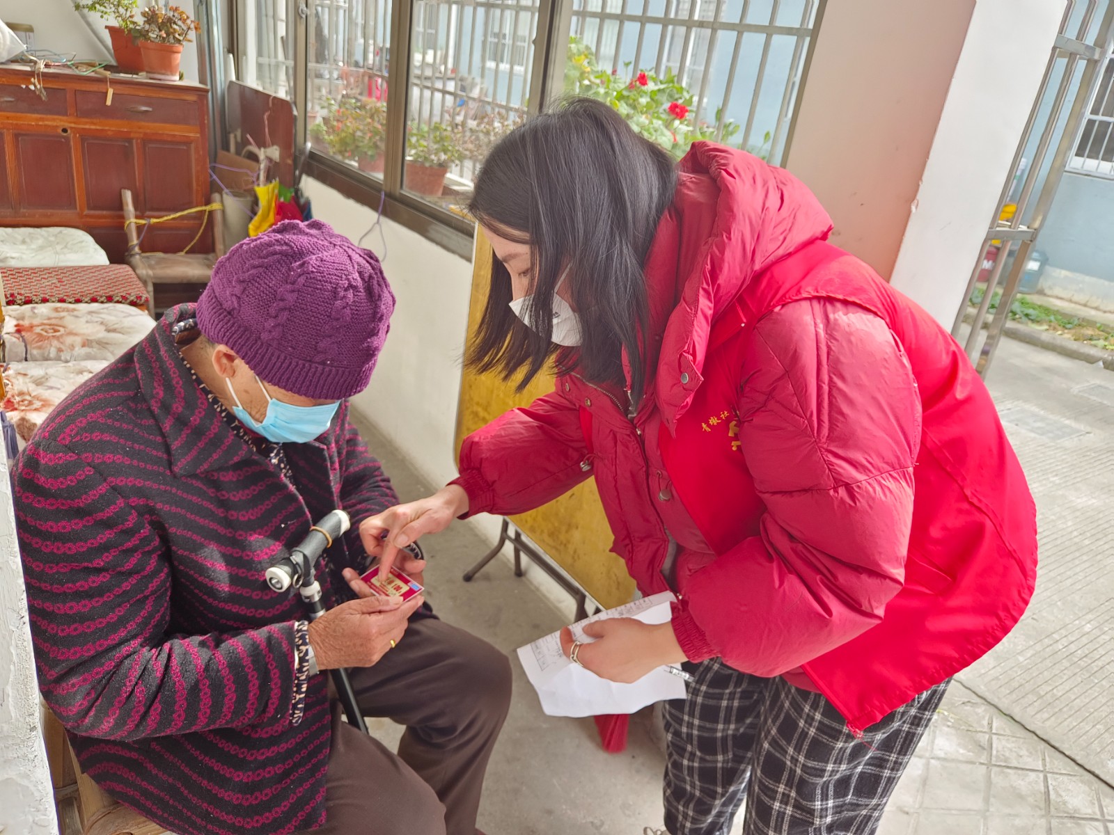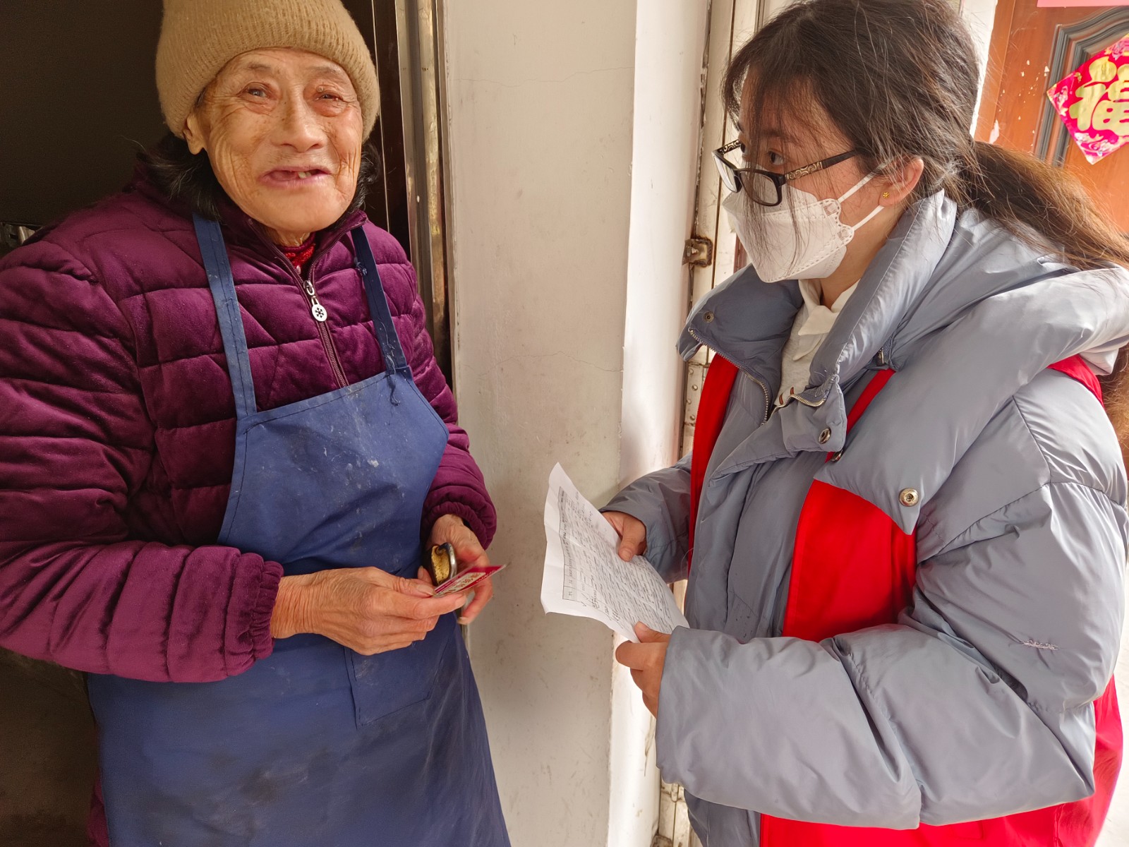本次暖心关爱活动主要面向辖区内12月接种第一针的老人,在老年人家中,志愿者们对老人详细讲解新冠肺炎的相关防护措施,并暖心关爱老人接种后的症状,嘱咐老人在日常生活中注意用火用电安全,防电信诈骗等注意事项。最后,志愿者们给老人们送上了100元加贝超市购物卡。