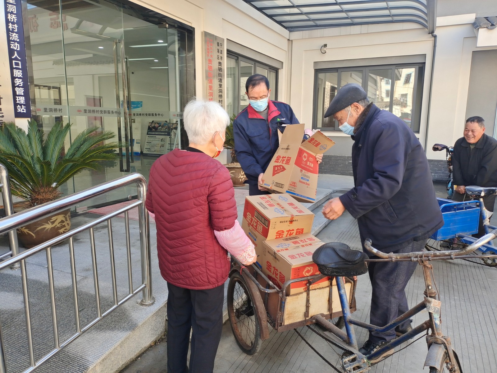 孝老敬老是中华民族的传统美德,为让老人们度过一个祥和欢乐的春节,进一步发扬敬老、爱老、助老的良好社会风貌,里洞桥村会为辖区内80周岁以上老年人发放食用油,今年总计发放54份。虽然现在民们生活条件都不错,但是过年过节能收到村里的礼品,老人们依旧满心欢喜和感恩志愿者们每到一户老人家,都会地说:“阿婆/阿公,你的油我们给你拿来了。”“感谢党和政府,这么惦记我们老年人还给我们送到家里!