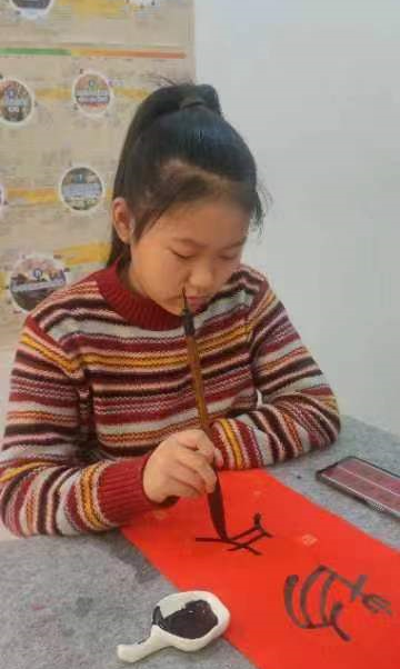 原来,这是社区热心居民侯小丽一家赠送的春联和福字。她的大女儿胡晏嘉今年13岁,喜欢书法,前两天,她向家人提议,何不发挥自己的爱好,将自己写的春联和福字送给社区老人,把美好祝愿送给大家。这个提议很快得到了父母的支持,侯小丽还特意买来写春联所用的纸张,女儿随即在家中铺台蘸墨,一笔一画认真写了起来,比较独特的是,福字上,她还画上了可爱的小兔子。红彤彤的春联,喜盈盈的福字,饱含着孩子暖暖的爱意。