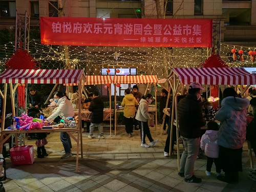 元宵节是中国的传统节日之一。为弘扬中华民族传统文化,增添浓郁的节日氛围,24日,天悦社区联合铂悦府小区物业组织了欢乐元宵游园会暨公益市集。
