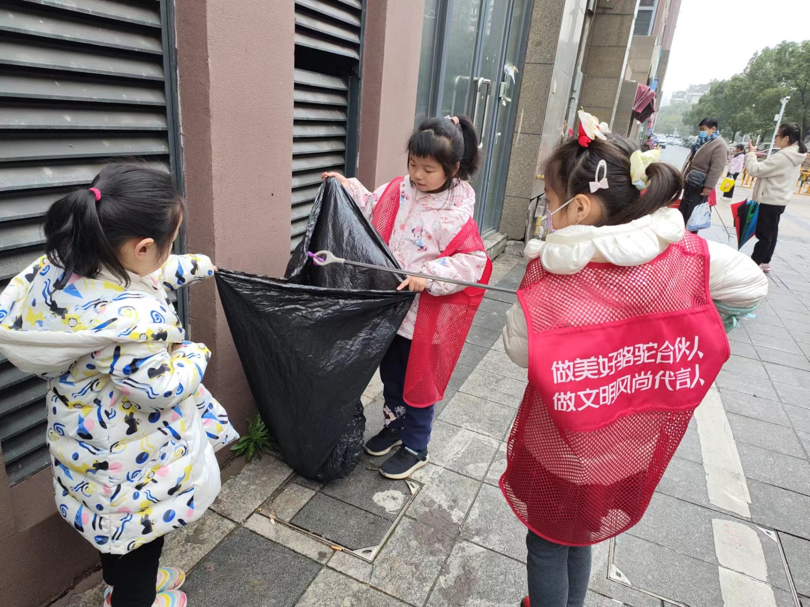 26日下午,金邑社区新时代文明实践站开展了以“清洁家园,美化环境”为主题的寒假实践活动。小朋友们在社区门口集合后,踊跃领取劳动工具,在工作人员的带领下,沿着社区周边,清理沿街卫生。小朋友们别看人小,志气可大着呢,小眼睛不放过每一个脏污的角落。大家充分发扬了主人翁的精神,你捡垃圾,我收垃圾,捋胳膊,挽袖子,干得热火朝天。流动党员,社区志愿者也主动加入了队伍,大小志愿者齐心合力。