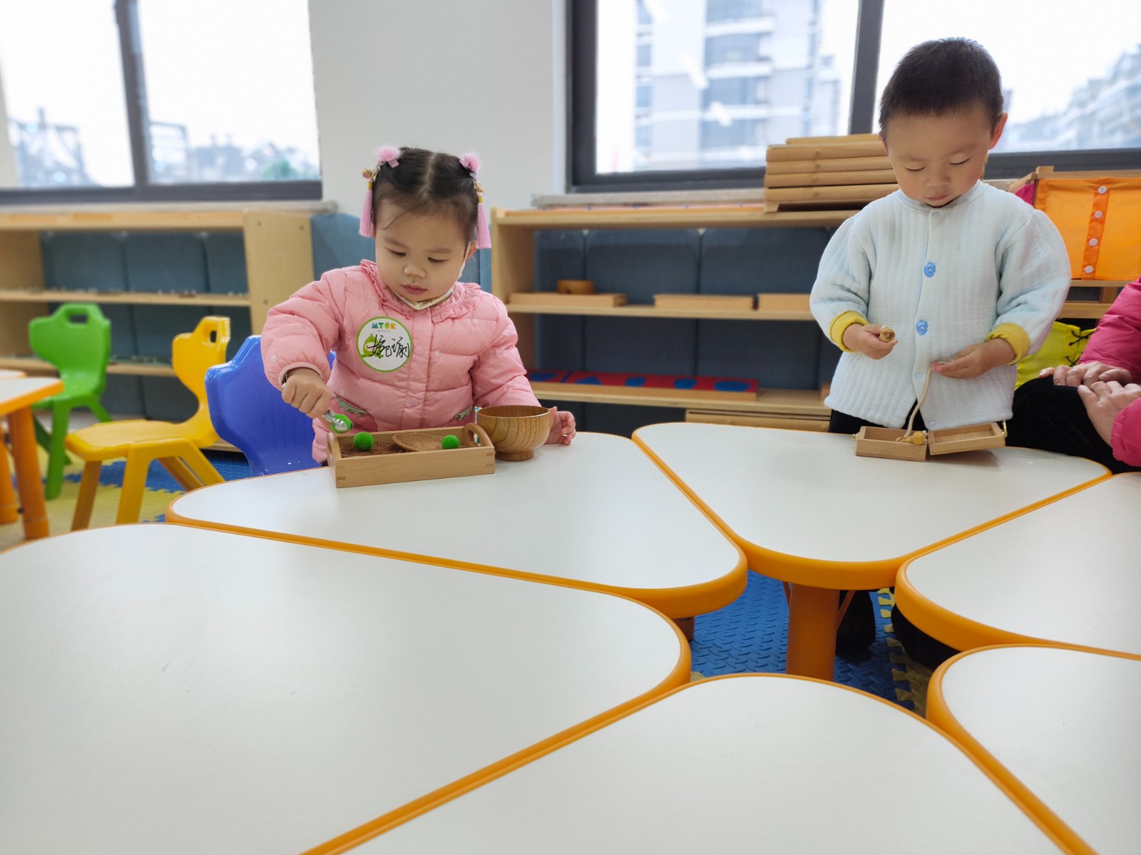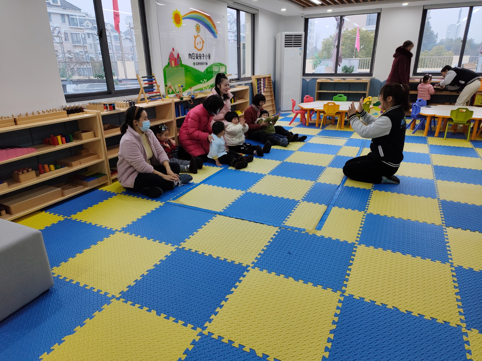 金邑社区在金邑水岸镇红邻里中心儿童之家开展早教课堂活动。课程开始前,老师引领孩子和家长进行互动,安抚宝宝的情绪,孩子们很快适应了课堂氛围。