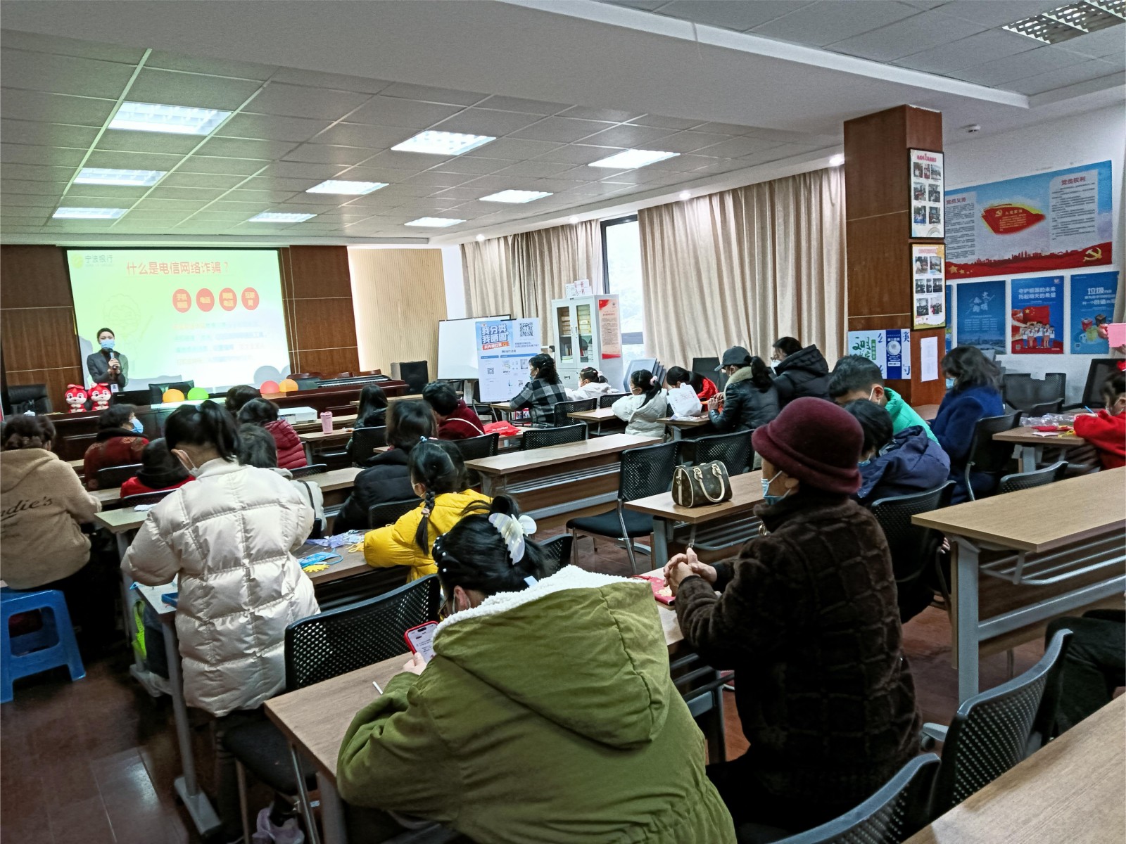 在讲座中,老师和大家介绍了什么是电信诈骗,常见的电信诈骗手段和如何预防电信诈骗。电信诈骗是指不法分子通过电话、网络和短信方式,编造虚假信息,设置骗局,对受害人实施远程、非接触式诈骗,诱使受害人给不法分子打款或转账的犯罪行为。通过老师的讲解,大家了解了:要预防电信诈骗,1、不要轻易相信来历不明的电话和信息,尤其是管好自己的欲望,诈骗分子就是利用人们好占小便宜的心理进行诈骗的。2、要有保密意识,无论什么情况,都不向对方透露自己及家人的身份、存款、银行卡等信息。3、不要轻易转账,要了解银行卡常识,保证自己银行卡内资金安全,决不向陌生人汇款、转账。