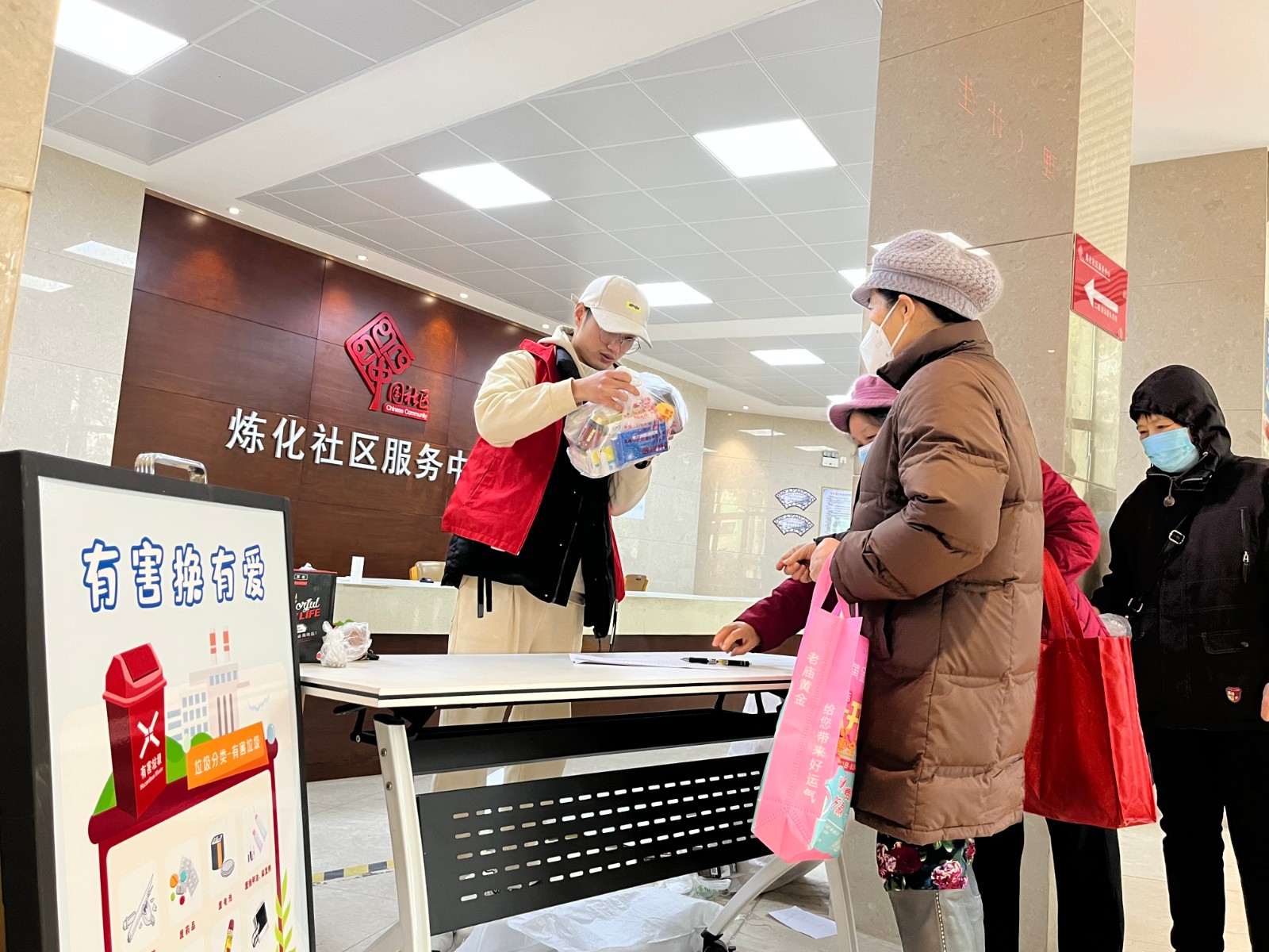 从无意识到有意识,从“要我分”到“我要分”,每月21日“有害换有爱”的兑换活动已经深深刻进了炼化社区居民的心里。今天上午,炼化社区新时代文明实践站开展“有害换有爱”兑换活动,吸引了大量网格居民积极参与。