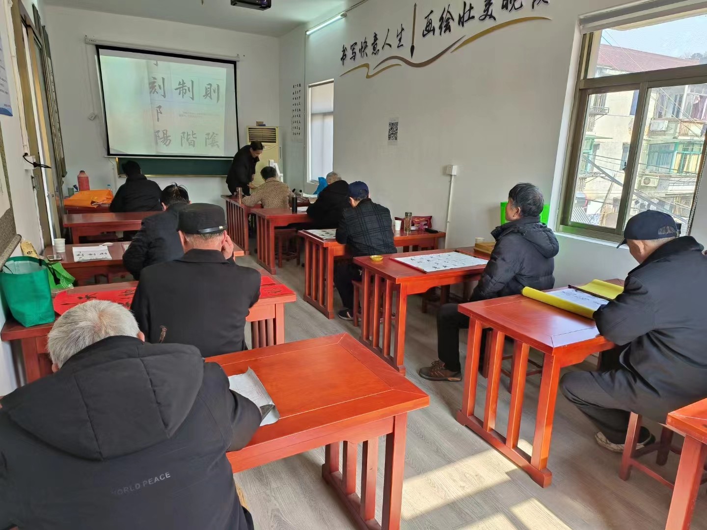 本次书法班由老年学校负责人鲁孝银同志主持。陆埠镇成人学校退休教师陆明老师主讲。陆老师根据每个学员的学习要求制定了不同的学习方案,有些学员还在练习笔画,有些学员写得是楷书,也有些学员喜欢练习行书。虽然大家起点不同,但是静心、认真、坚持的学习态度是一样的。