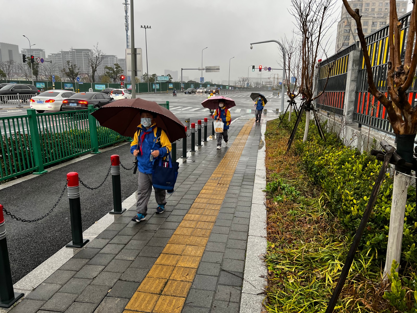 224日早七点不到,新晨社区儿童友好“守护者联盟”成员王阿姨、钟阿姨和徐阿姨就已经早早各就各位,她们分别守护在尚志中学、区中心学校(箭湖校区)和星辰幼儿园的人行道与接送点旁。“小朋友慢些走,雨天路滑…注意安全……”“家长电瓶车请走非机动车道,这里是人行道”……下着雨的周一早高峰分外的繁忙,而“守护者联盟”的到来让纷乱忙碌的人流变得谨慎且有序了起来。“守护者联盟”是一支由新晨社区组建,由家长、教师与交警等多种力量组成的志愿者团队,通过在上下学高峰时段的执勤与引导,守护孩子们的通行安全,保障周边道路交通秩序,共同打造一条“孩子开心、家长放心”的“最美上学路”。