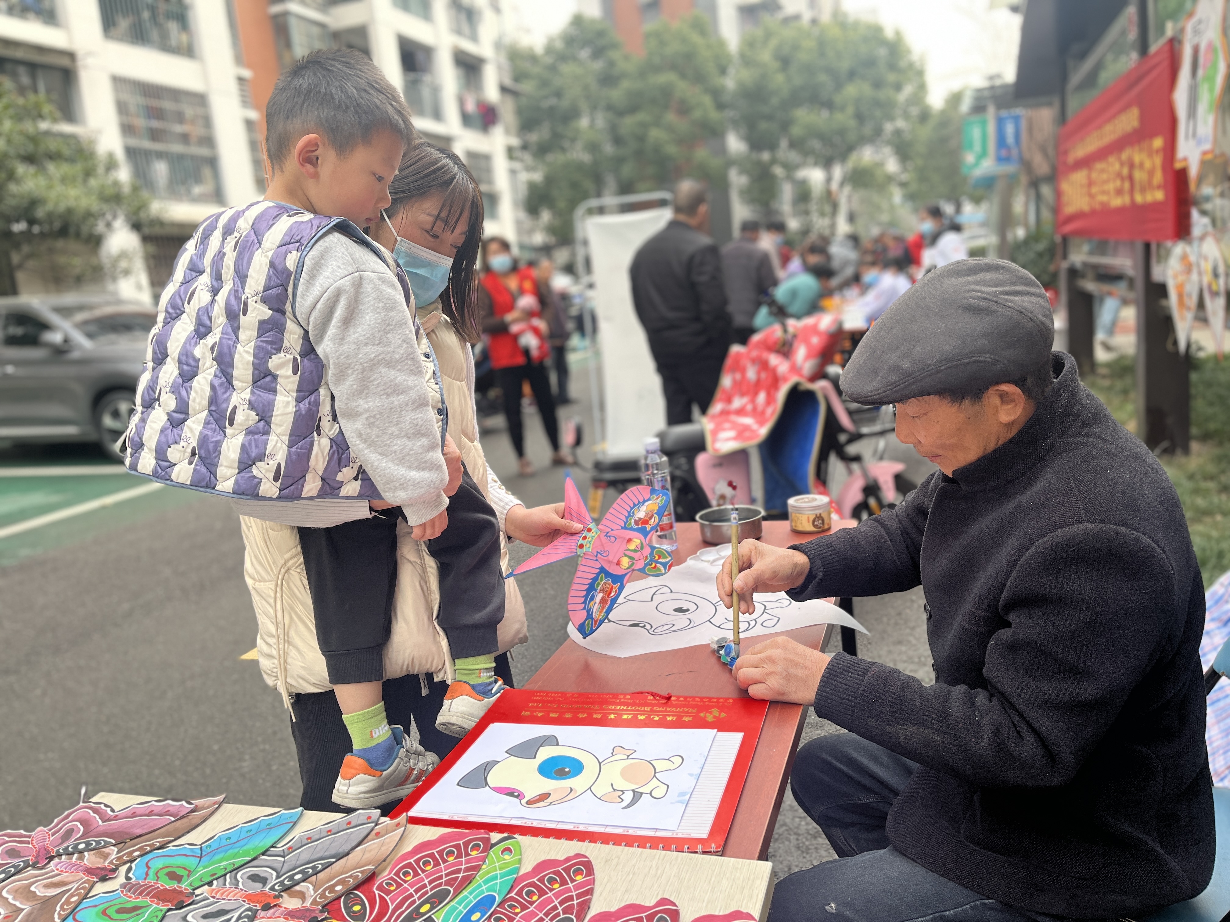 今天的雷锋日活动还专门设了一个摊位做风筝展览。郭师傅把自己制作的三十多个风筝拿到现场展览。展出的品种有老鹰、金鱼、蜻蜓、天鹅等中国传统风筝作品,个个栩栩如生,吸引了众多社区居民和小朋友过来观赏。在现场郭师傅还耐心地为小朋友们讲解做风筝的历史,教小朋友们亲手制作简单的风筝,让小朋友们亲手感受风筝的魅力,领略风筝的文化。