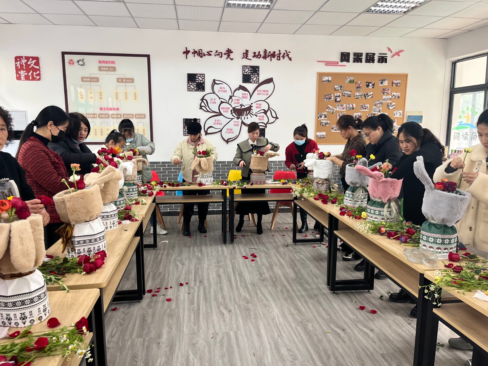 花苞待放的初春,为庆祝“3.8女神节”到来,勤勇村于2023年3月1日中午十二点组织辖村内妇联执委、妇女代表及优秀巾帼志愿者共聚勤勇村新时代文明实践站,特邀具有社会知名度的金晶老师开展“巾帼向共富,花开别样红”小兔子插花制作专题活动。